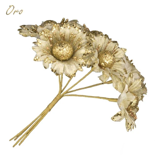 fiore bocciolo in tessuto colore oro misura diametro 3 cm, ottimo per confezionare bomboniere e sacchettini portaconfetti per nozze oro 50 anni di matrimonio.