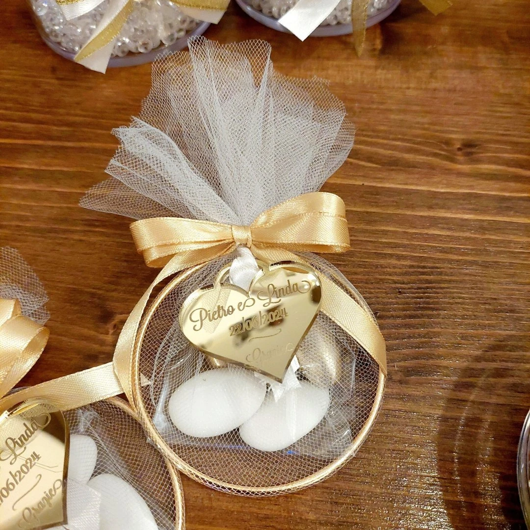 Rendi le tue confezioni ancora più eleganti con i nostri Anelli in metallo color oro per bomboniere, perfetti per creare portaconfetti moderni con tulle, organza o rete. Ideali per bomboniere dallo stile minimal e raffinato, si decorano facilmente con nastri, fiocchi, tag personalizzate e fiori secchi, per un risultato pronto da donare. Prezzo cadauno.