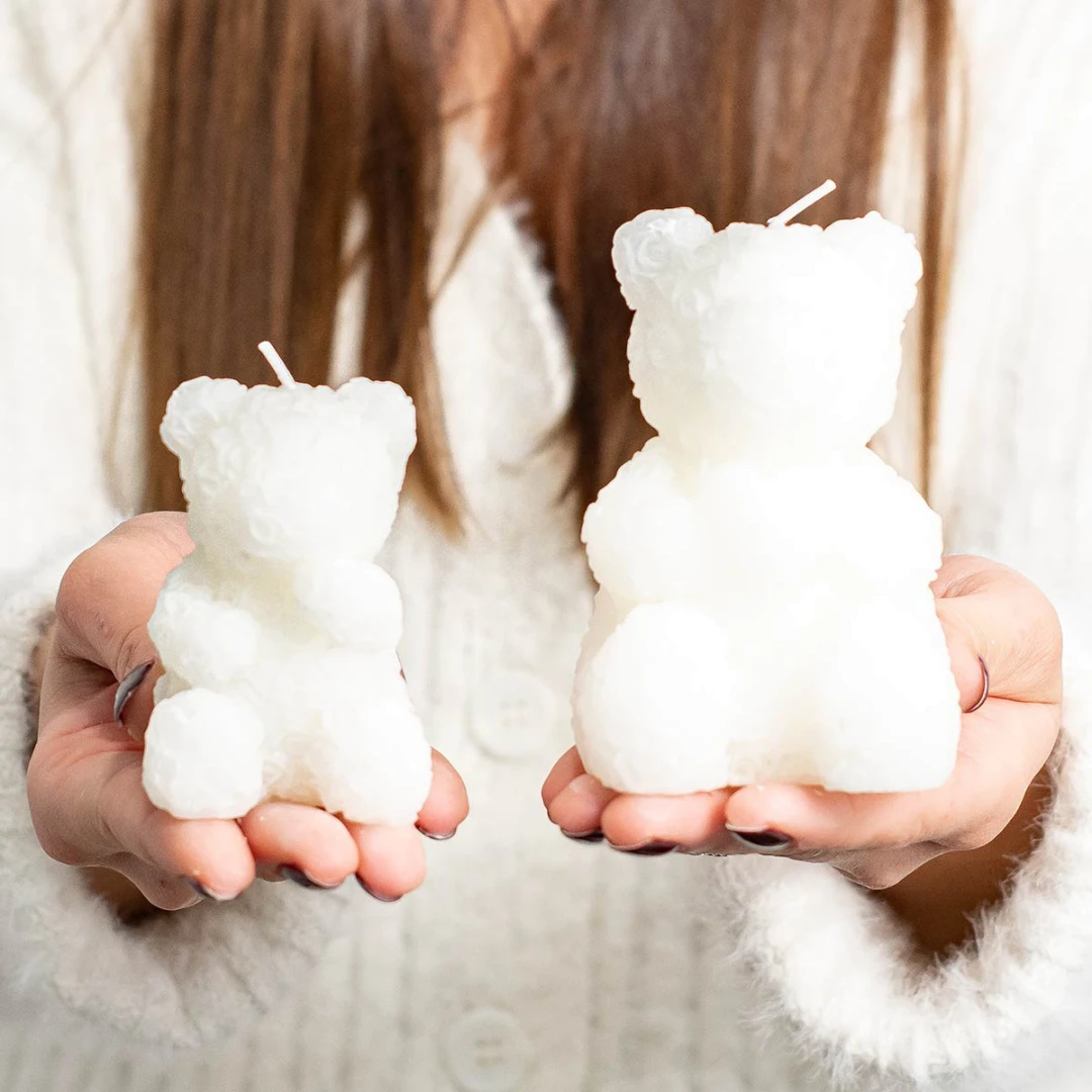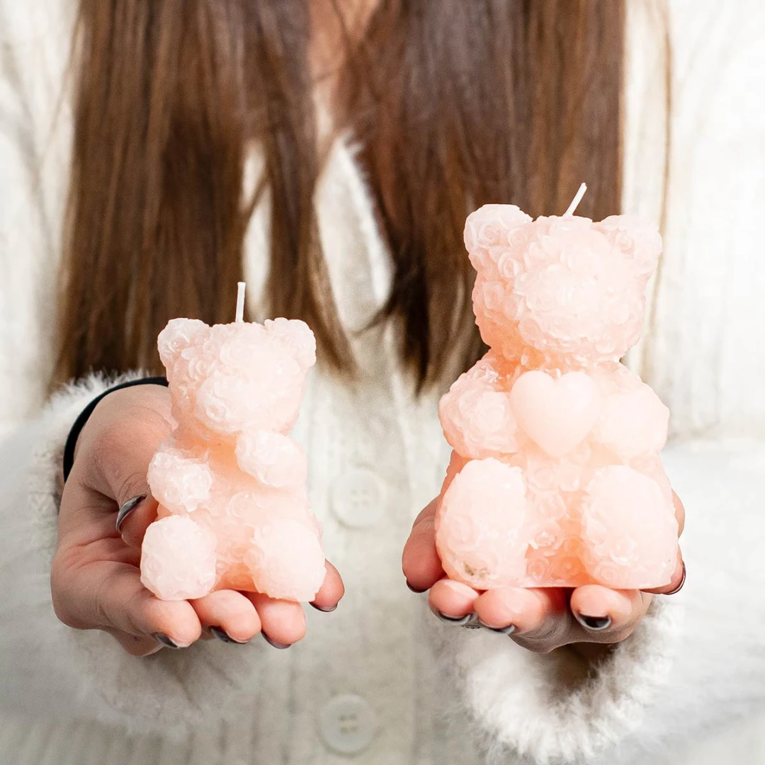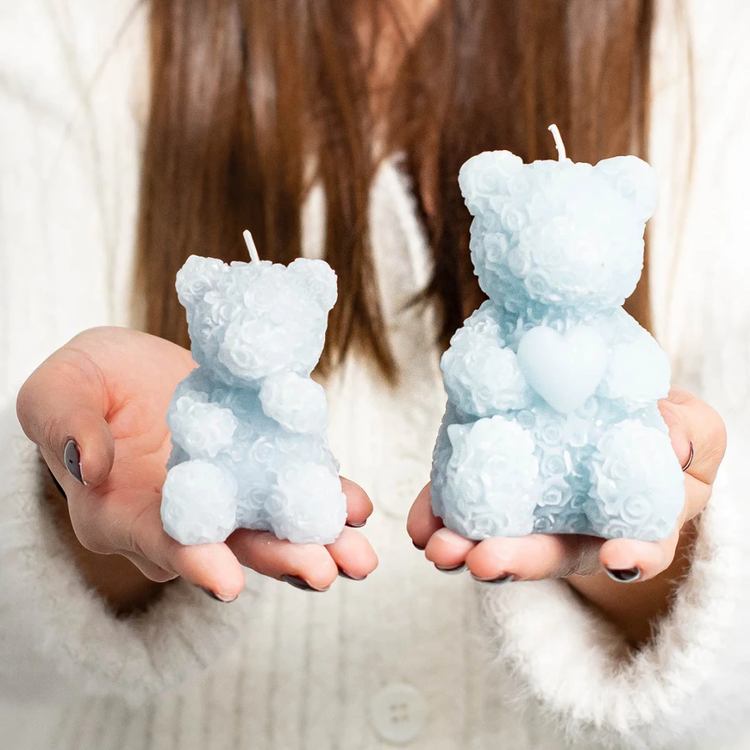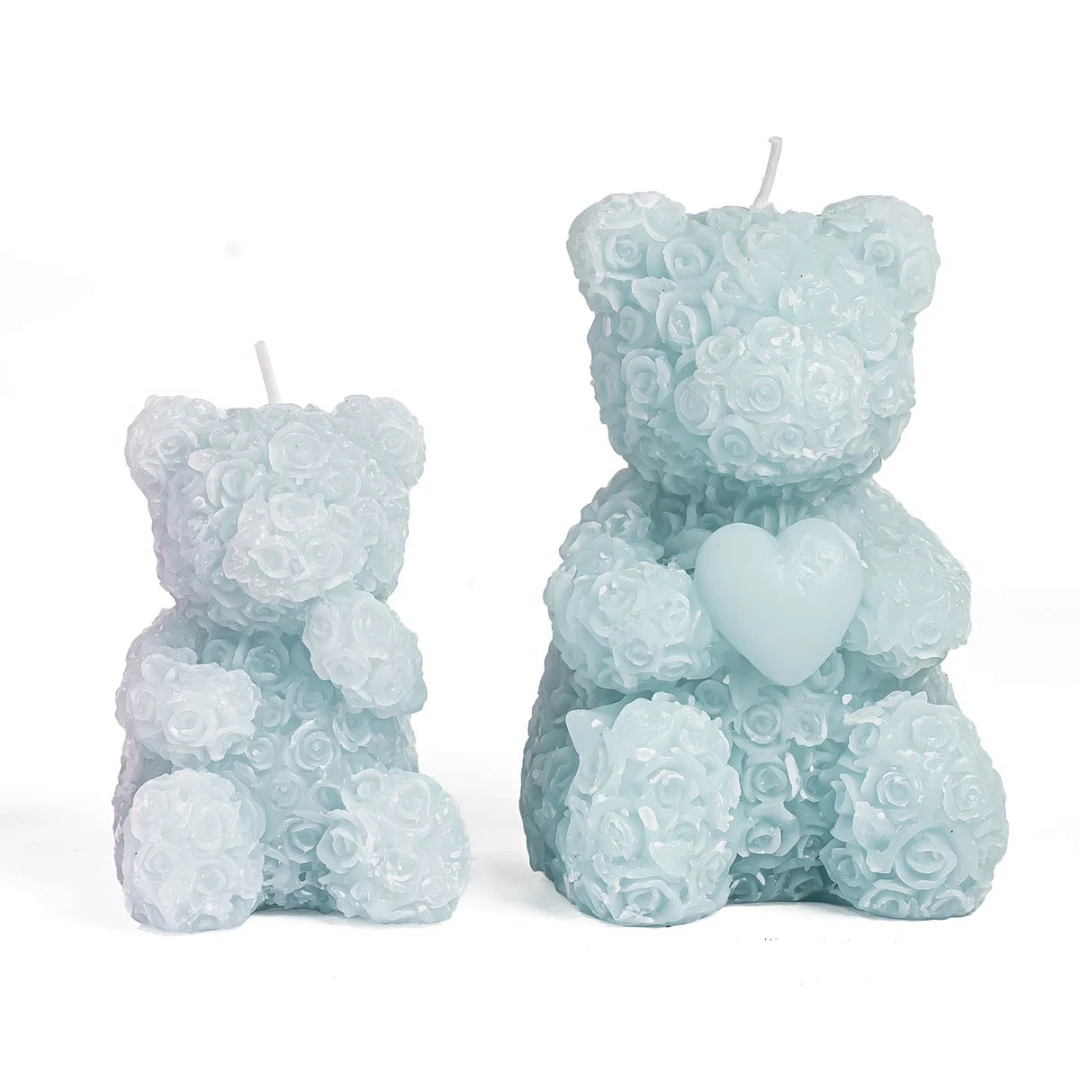 Bomboniere 2026, Candele Orsetti ricoperti da rose colorati in cera, disponibili diverse misure e colori, arrivano confezionate nel cellofan con un fiocco abbinato al colore della candela.