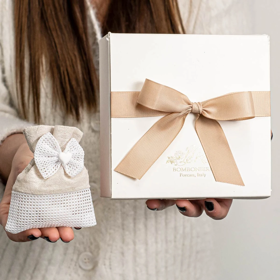 Riceverai per ogni bomboniera 1 metro di nastro in raso del colore scelto