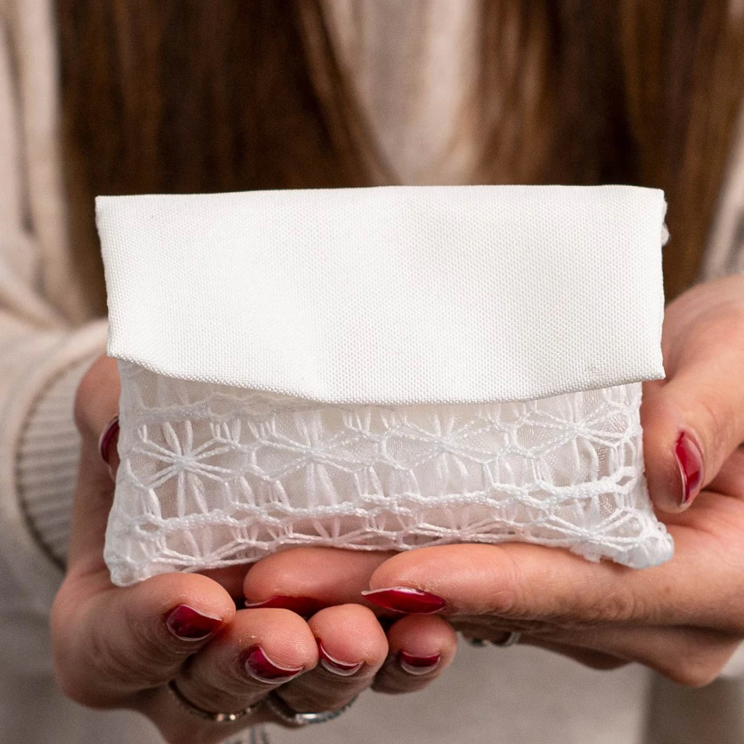 Bomboniere, Sacchettini portaconfetti con effetto pizzo bianchi. Disponibili 3 modelli diversi. Prezzo cadauno. Prodotto Artigianale.