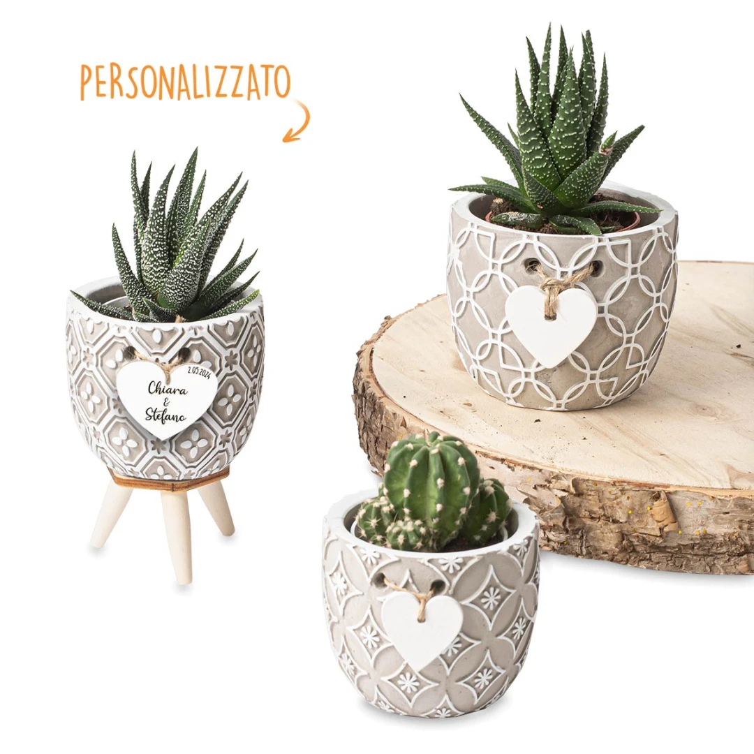 Bellissime Bomboniere 2026, Linea Decoro, Vasi Portapiantina in terracotta con cuoricino e decorate. Ciascun modello arriva assortito con tre diversi decori. Prezzo cadauno. Prodotto Artigianale. Puoi personalizzare la bomboniera aggiungendo un cuore inciso con il nome!