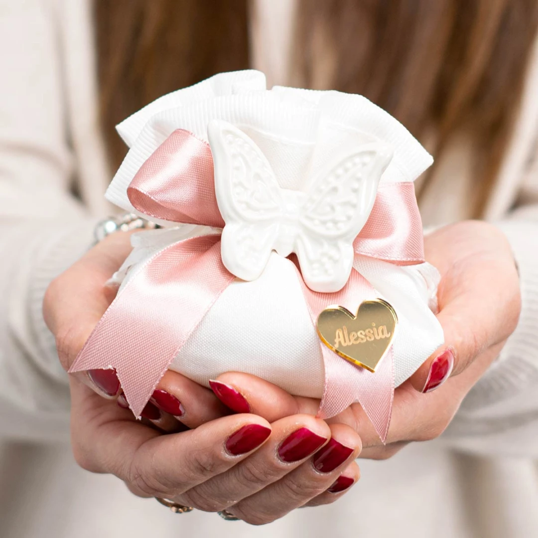 Ti arriverà la bomboniera completa di: per modifiche, scrivilo nel campo note a fine ordine |
