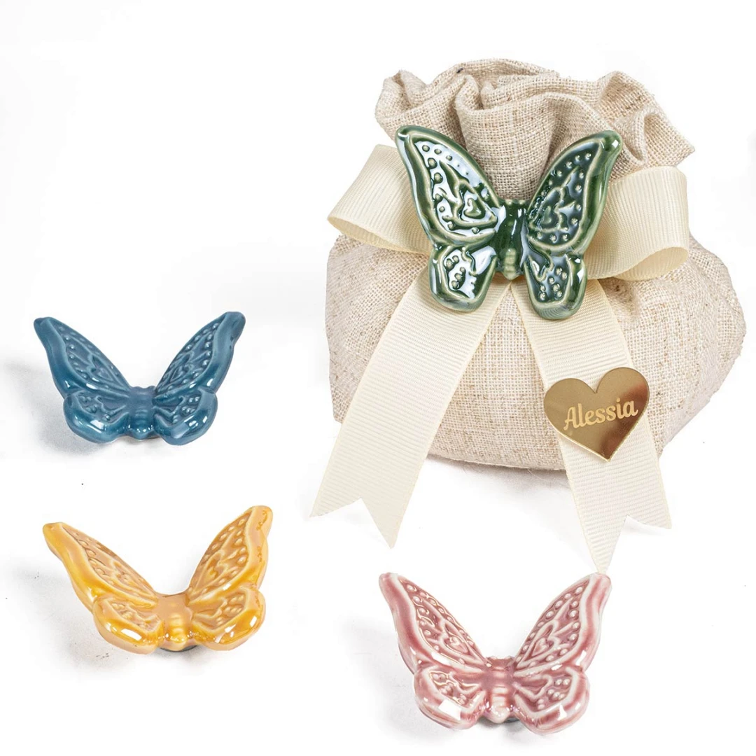 Bellissime Bomboniere 2026, Magnete in ceramica a forma di farfalla colorata, disponibili diverse misure ed assortita in 4 colori. Prezzo cadauno. Prodotto Artigianale.