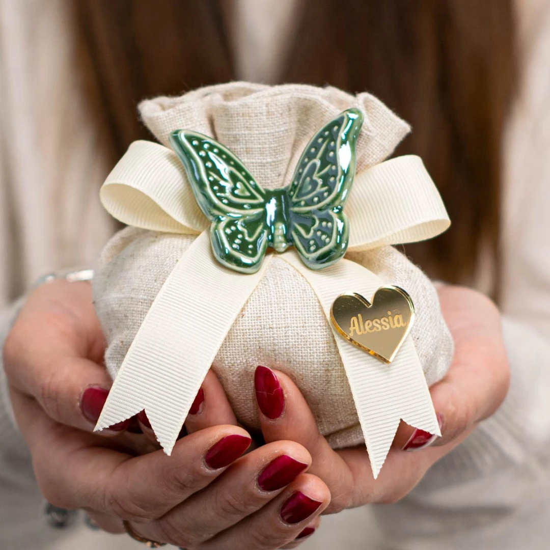 Bellissime Bomboniere 2026, Magnete in ceramica a forma di farfalla colorata, disponibili diverse misure ed assortita in 4 colori. Prezzo cadauno. Prodotto Artigianale.