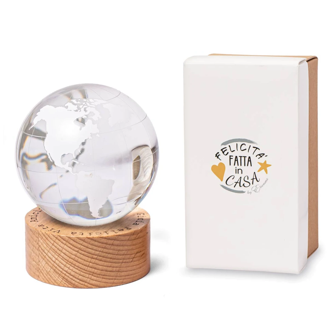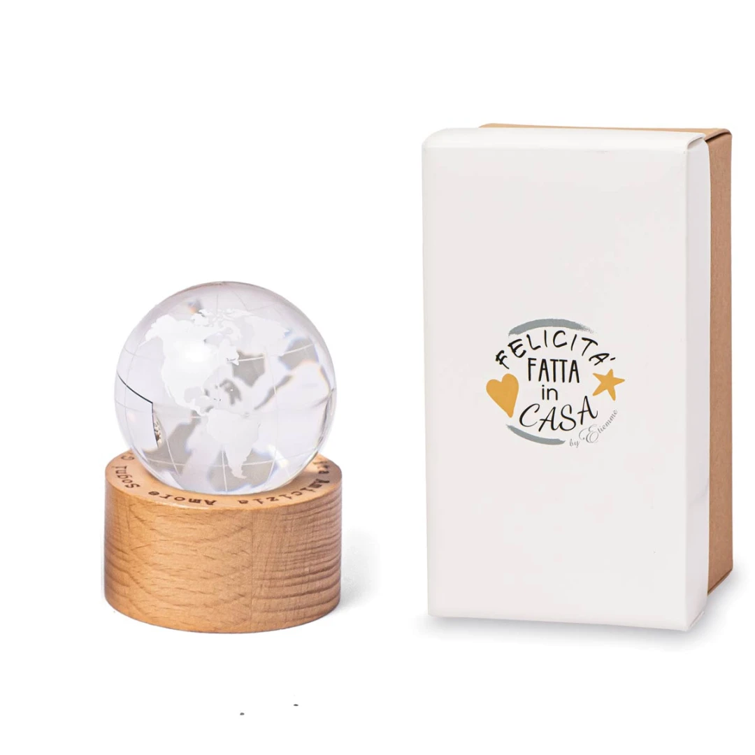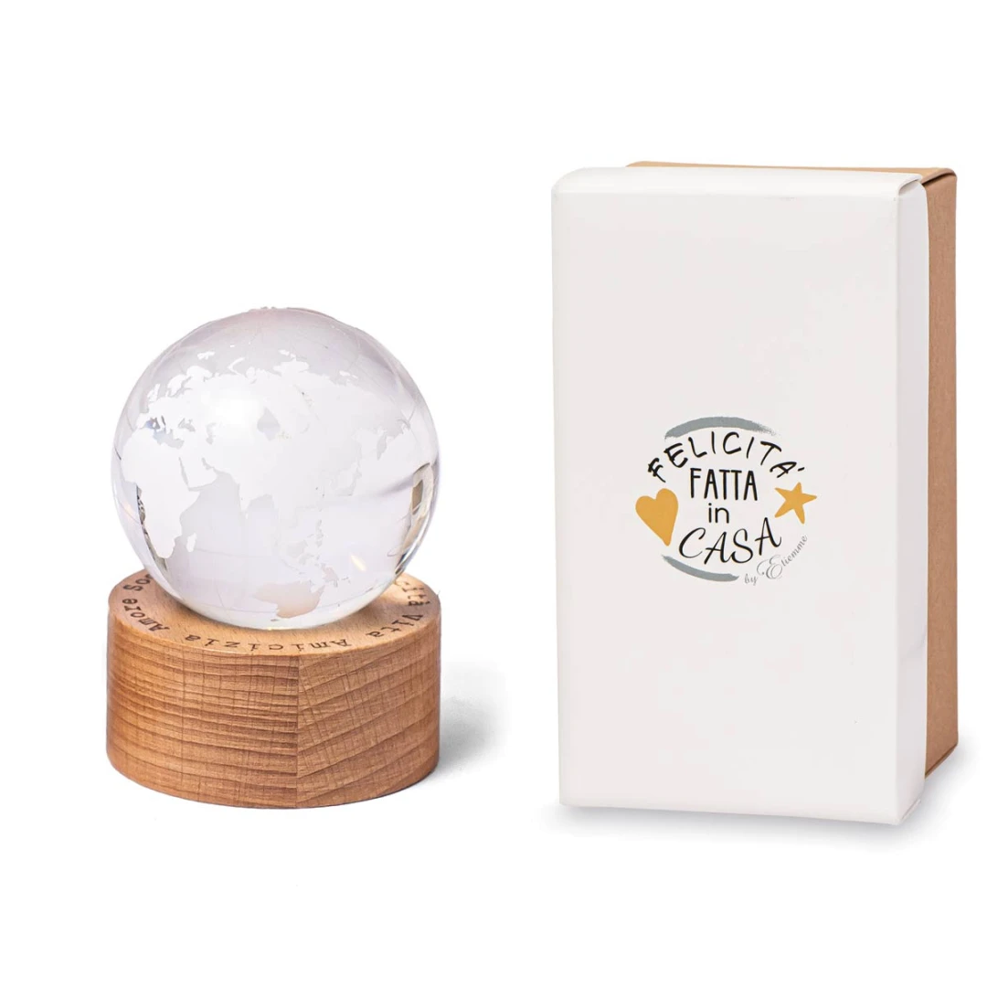 Bellissime Bomboniere 2026 , Mappamondi LED su base in legno con frase. Scatola inclusa.Pile NON incluse, Prodotto Artigianale. Puoi personalizzare la bomboniera aggiungendo l'incisione con il nome!essendo prodotto artigianale può avere piccole imperfezione sulla colorazione o sul vetro