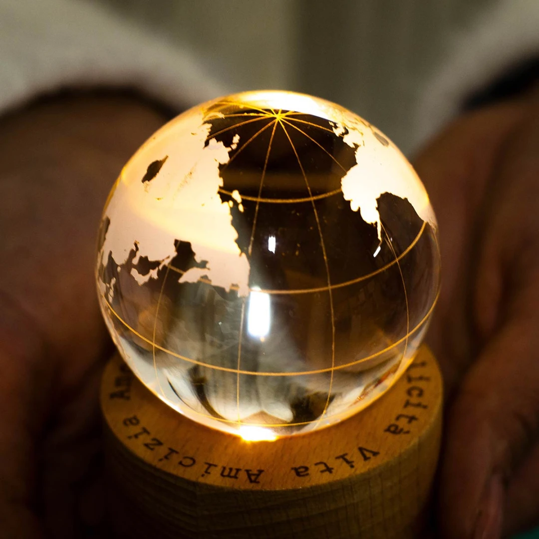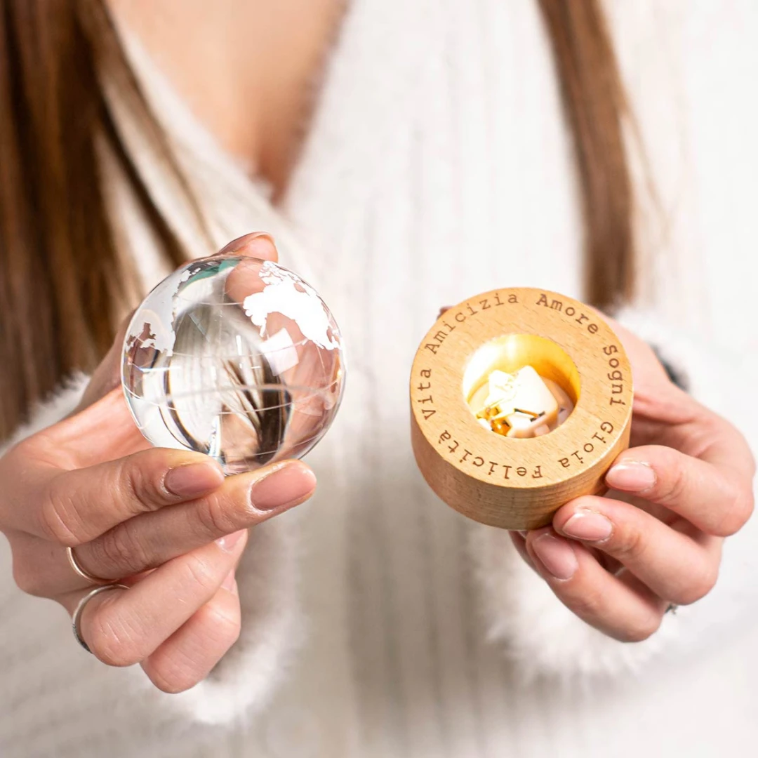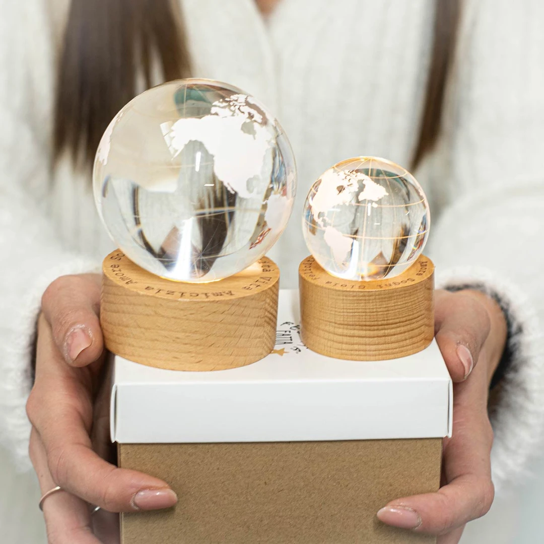 Bellissime Bomboniere 2026 , Mappamondi LED su base in legno con frase. Scatola inclusa.Pile NON incluse, Prodotto Artigianale. Puoi personalizzare la bomboniera aggiungendo l'incisione con il nome!essendo prodotto artigianale può avere piccole imperfezione sulla colorazione o sul vetro