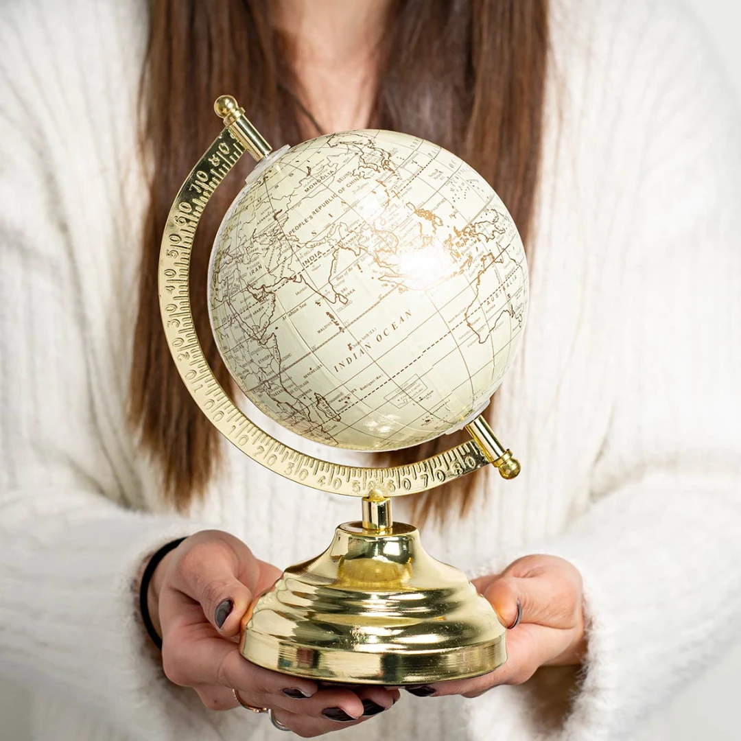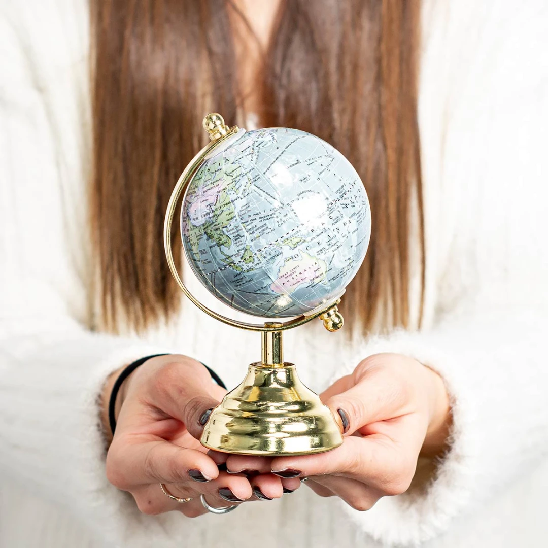 Bellissime Bomboniere 2026, Tema viaggio, Mappamondi con base in metallo e mondo in plastica, sono disponibili diversi modelli. Prezzo cadauno. Prodotto Artigianale. Puoi aggiungere una base personalizzata incisa SOLO per la versione STANDARD.