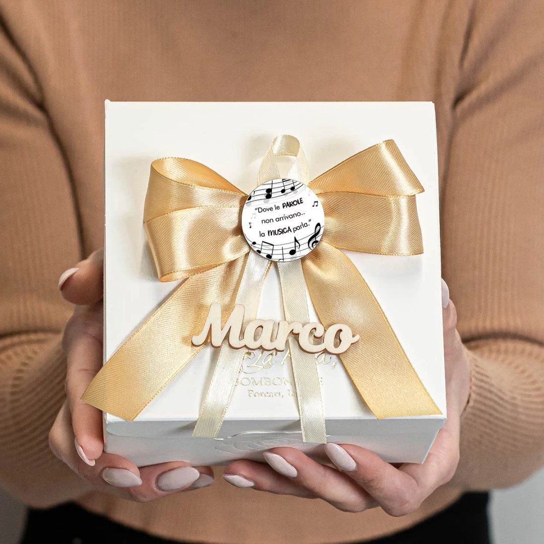 Riceverai la tua bomboniera confezionata con cura dal nostro laboratorio, completa di