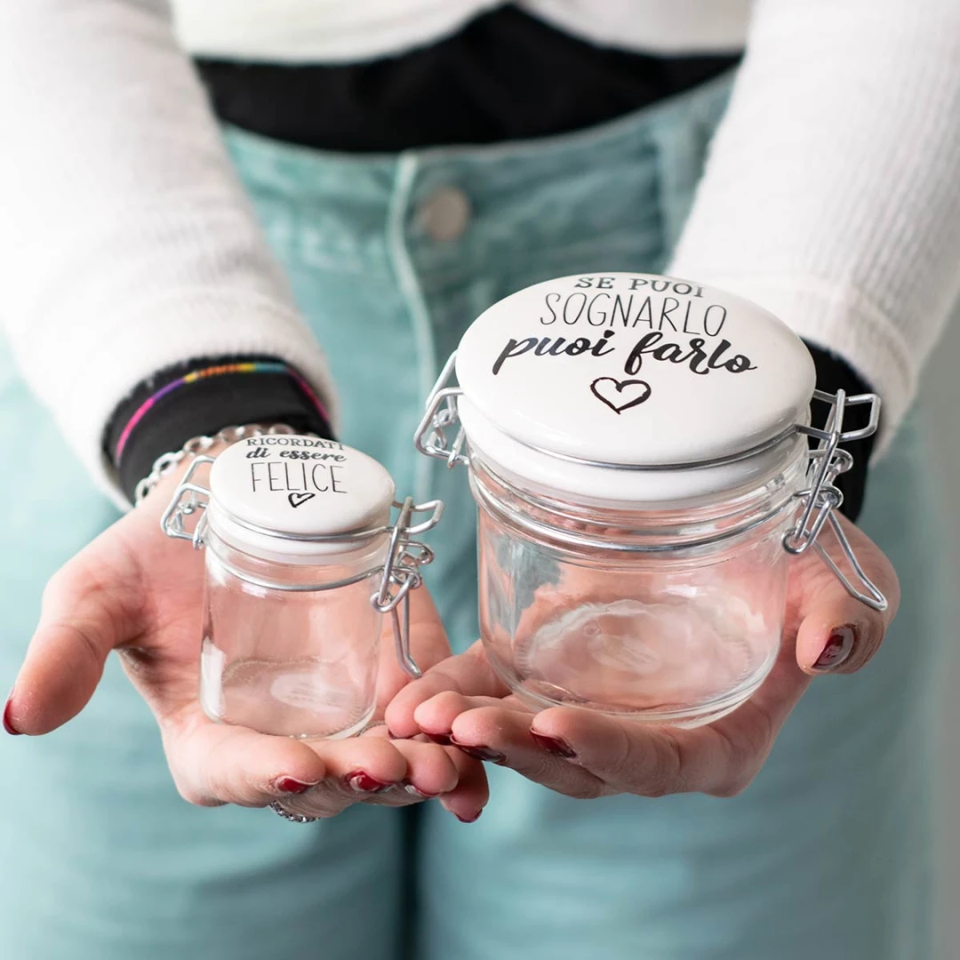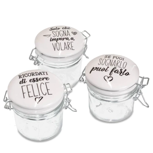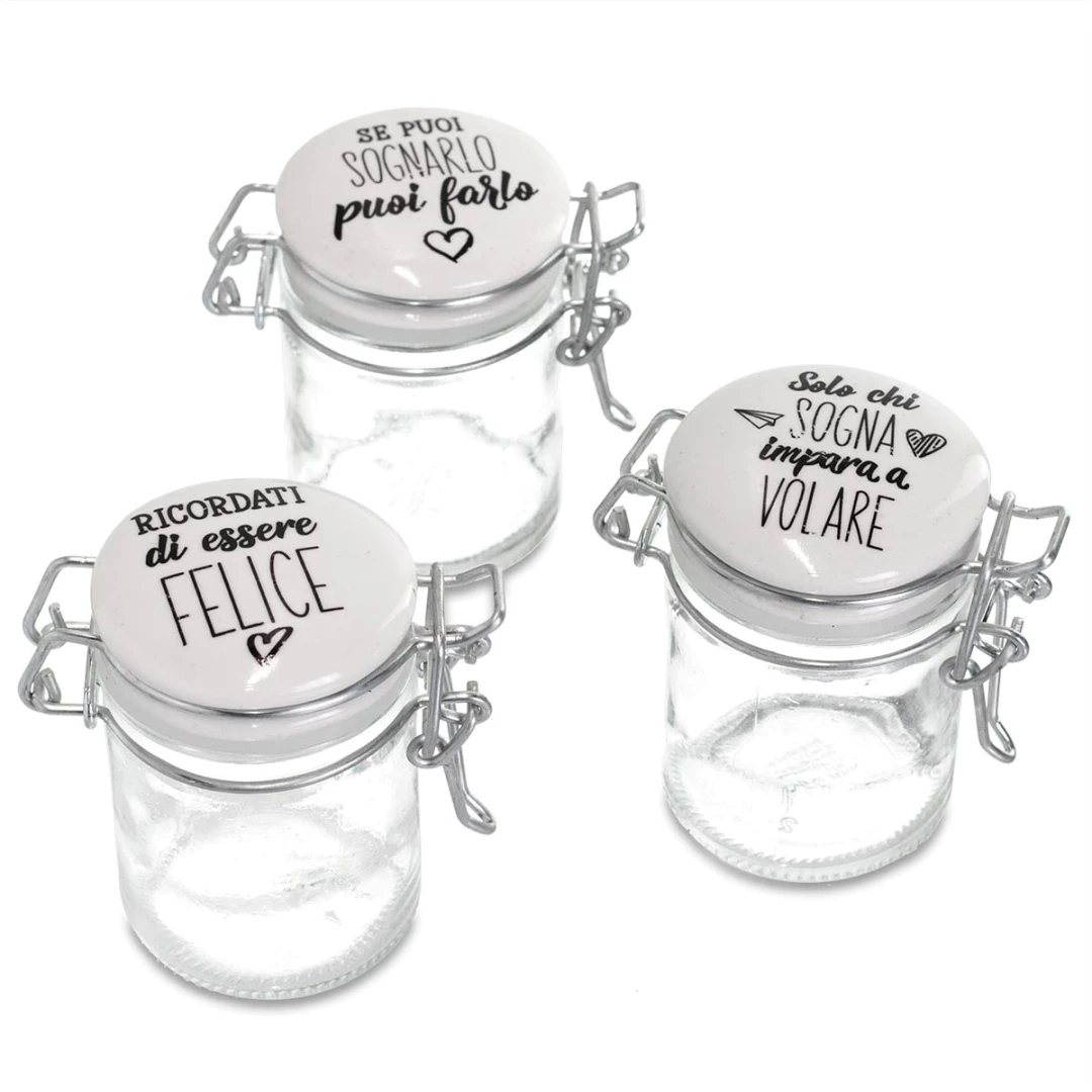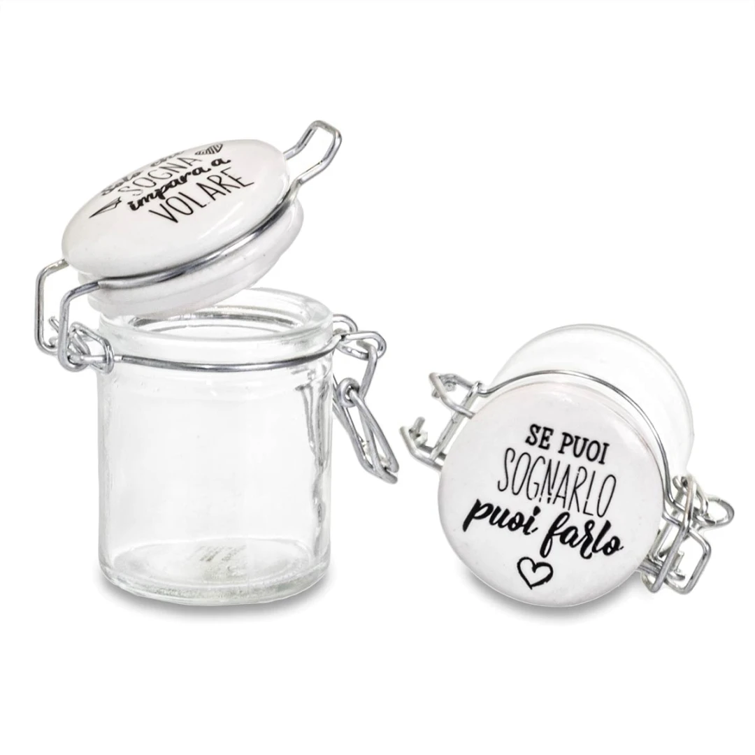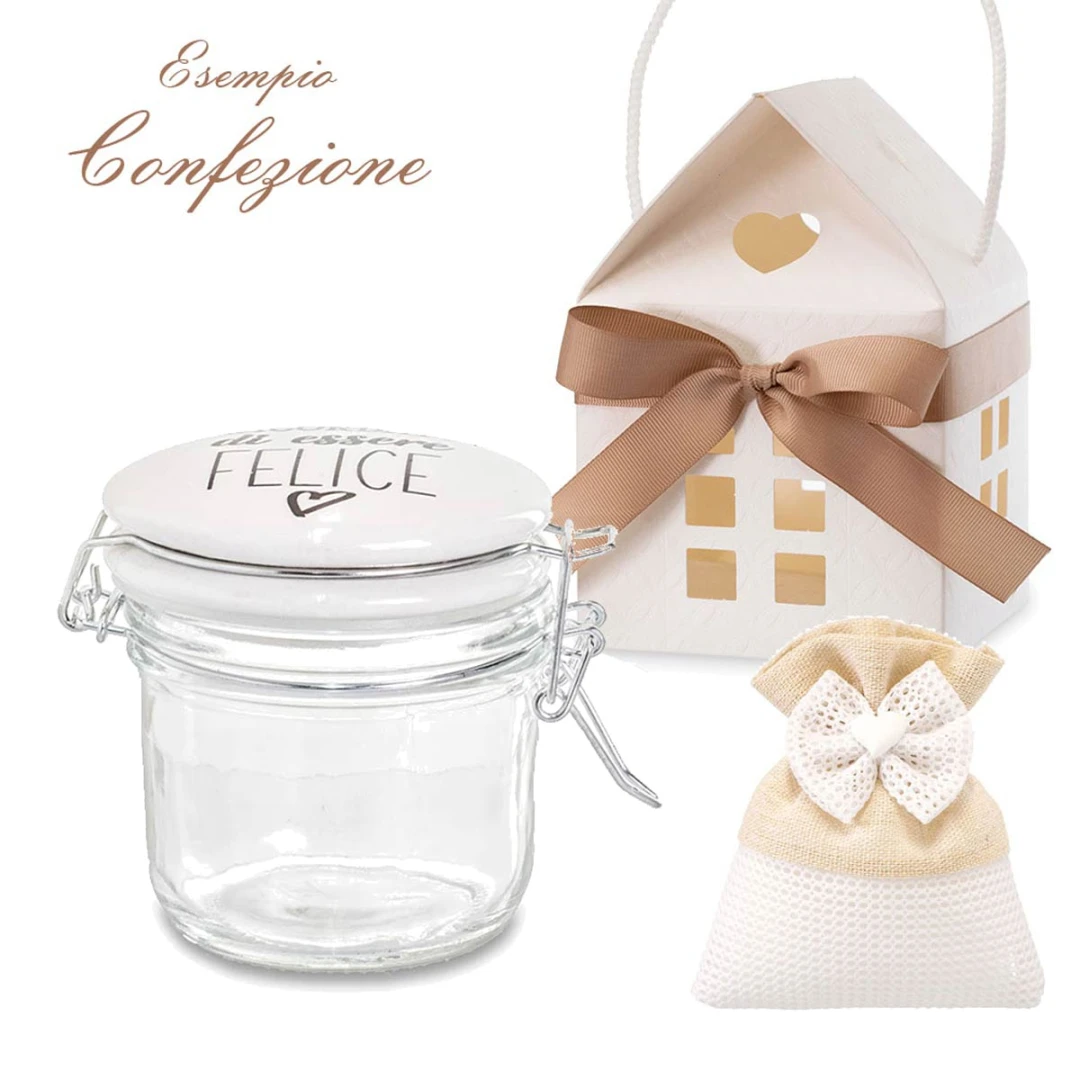 Idea Bomboniera Originale 2026, simpatici barattolini, vasetti in vetro che possono essere utilizzati come porta-confetto, porta spezie, contenitore per marmellata, miele.
