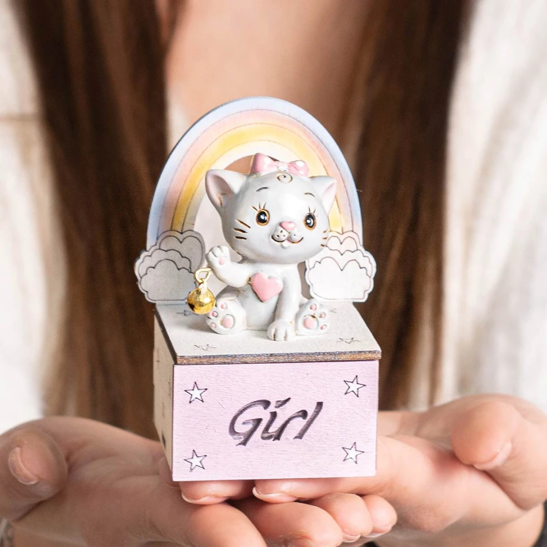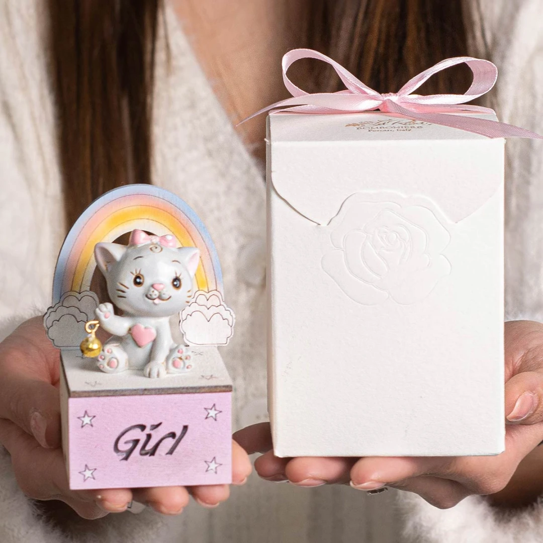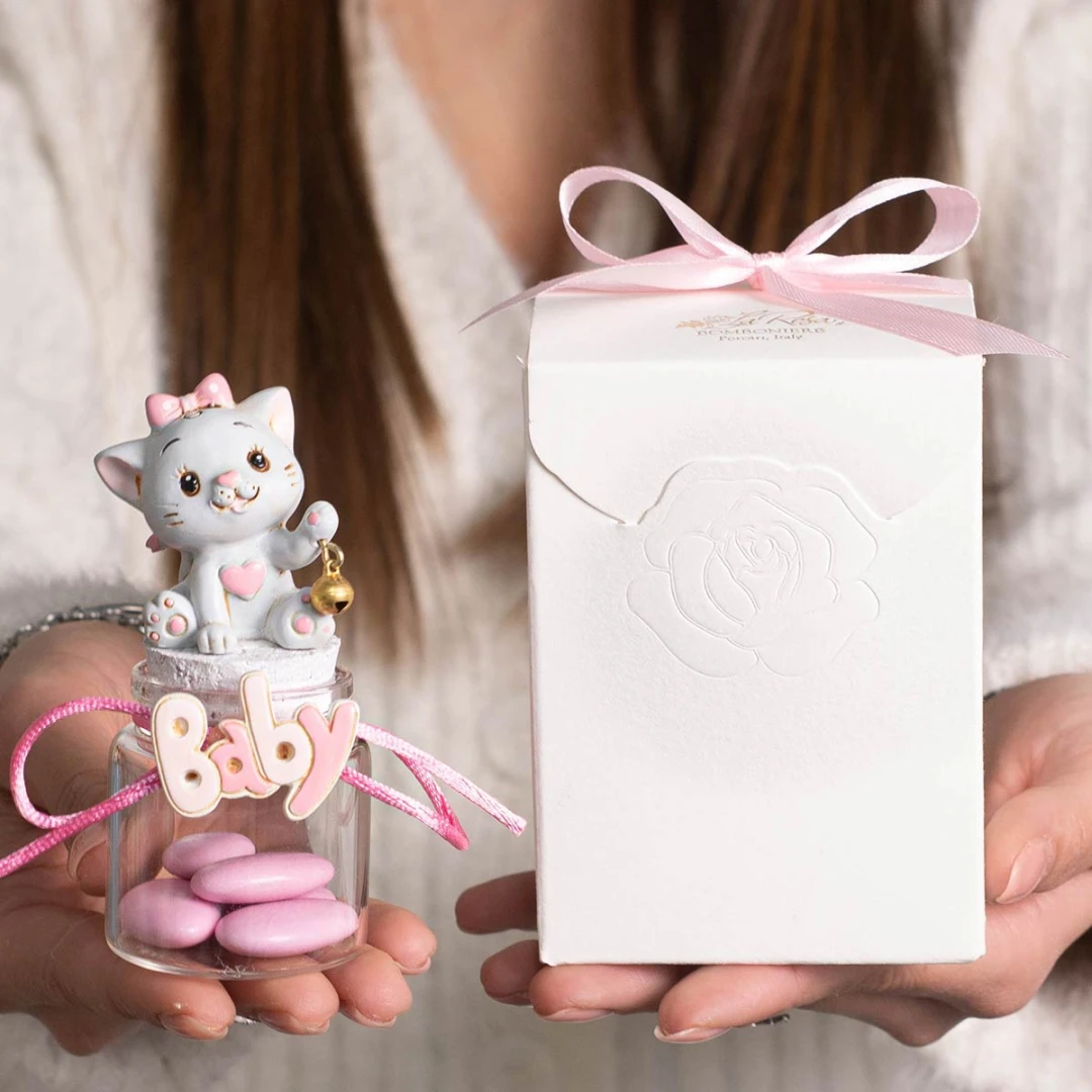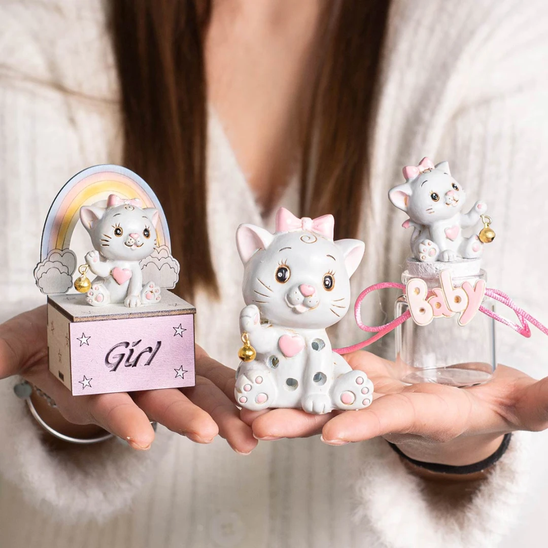 Bellissime Bomboniere 2026 per battesimo e nascita femmina, Gattina Led, Barattolino Gattina e Scatolina Gattina con cassettino ed arcobaleno. Per ogni prodotto ci sono 2 modelli assortiti tra loro. Prezzo cadauno. Prodotto Artigianale.
