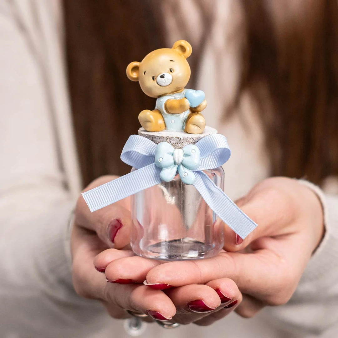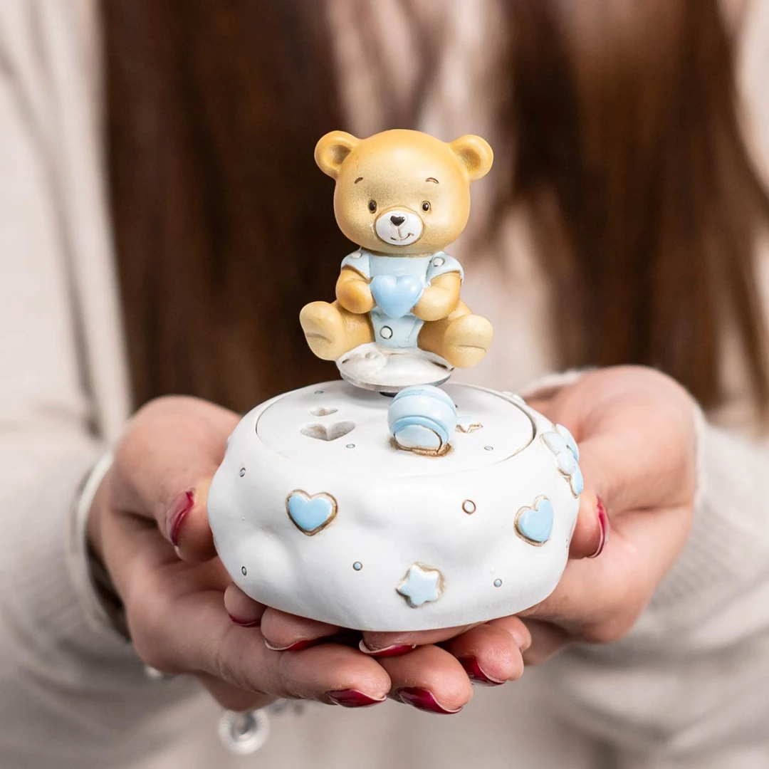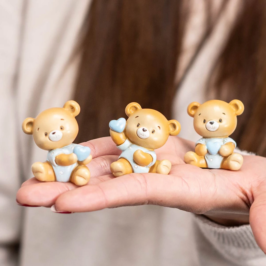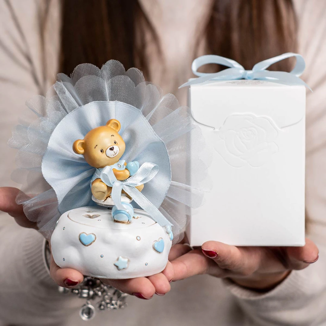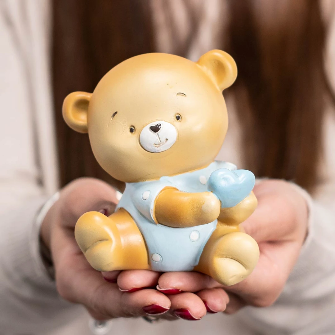 Bellissime Bomboniere 2026 per battesimo e nascita maschio, Orsetto salvadanaio, Barattolino Orsetto, Statuetta Orsetto e Carillon Orsetto. Per ogni prodotto ci sono 2 modelli assortiti tra loro (tranne il salvadanaio che sono 2). Prezzo cadauno. Prodotto Artigianale.
