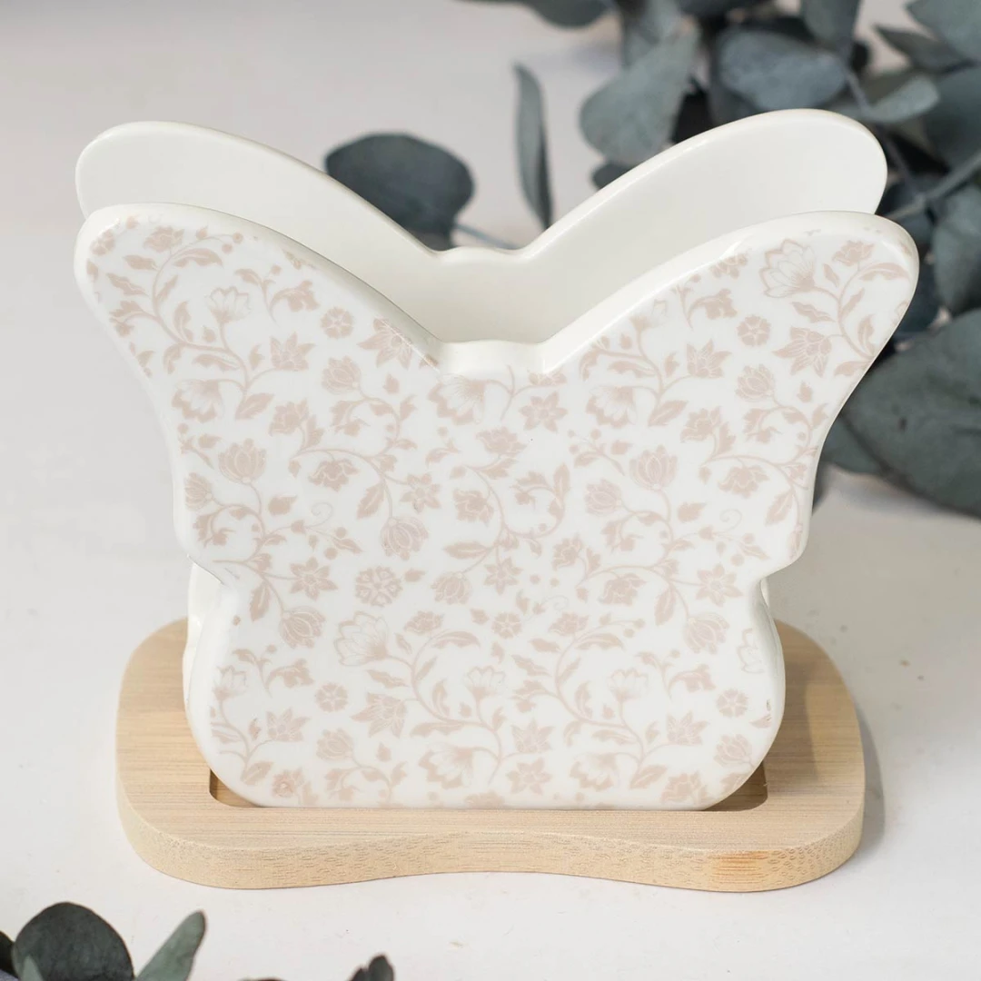 Bomboniere Brandani 2026, tema floreale beige in legno e ceramica. Linea Utile, disponibili diversi modelli. Prezzo cadauno. Prodotto artigianale.