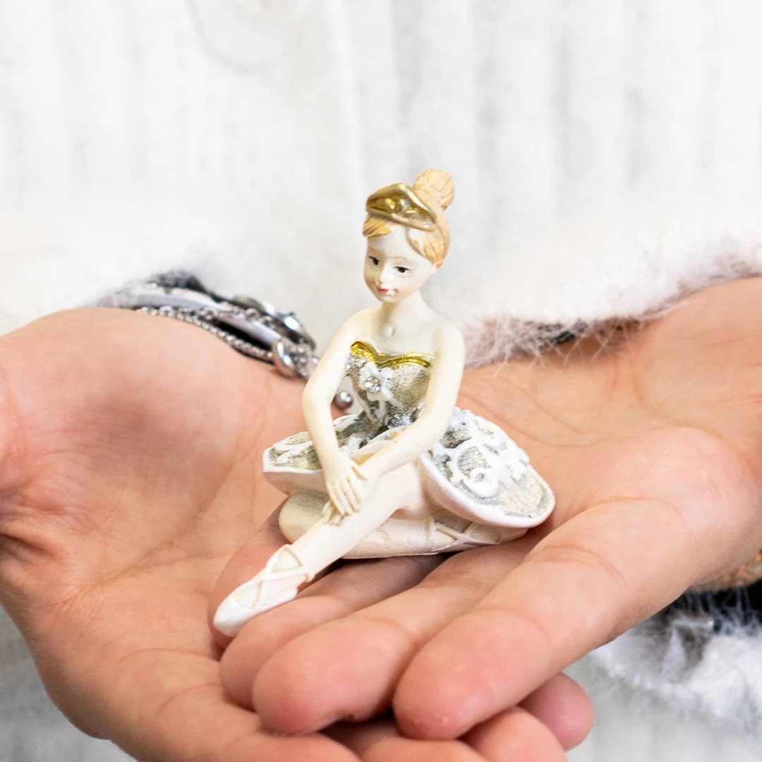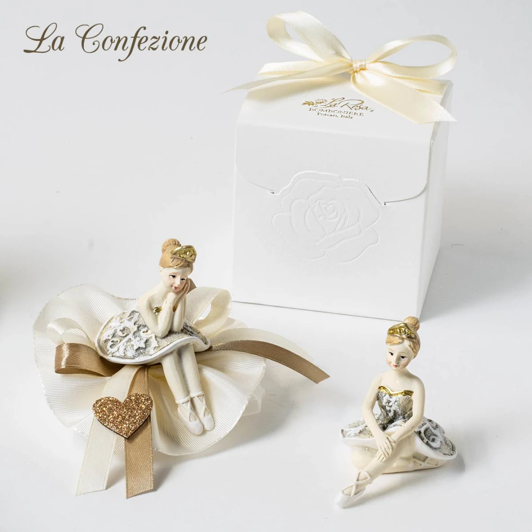 Bomboniere Comunione Femmina 2026 , ideale per bambina che pratica la ginnastica e danza, Ballerina Seduta in Offerta in resina decorata a mano, mista nelle 2 posizioni, misura 6 cm.