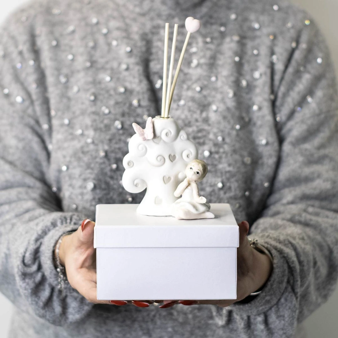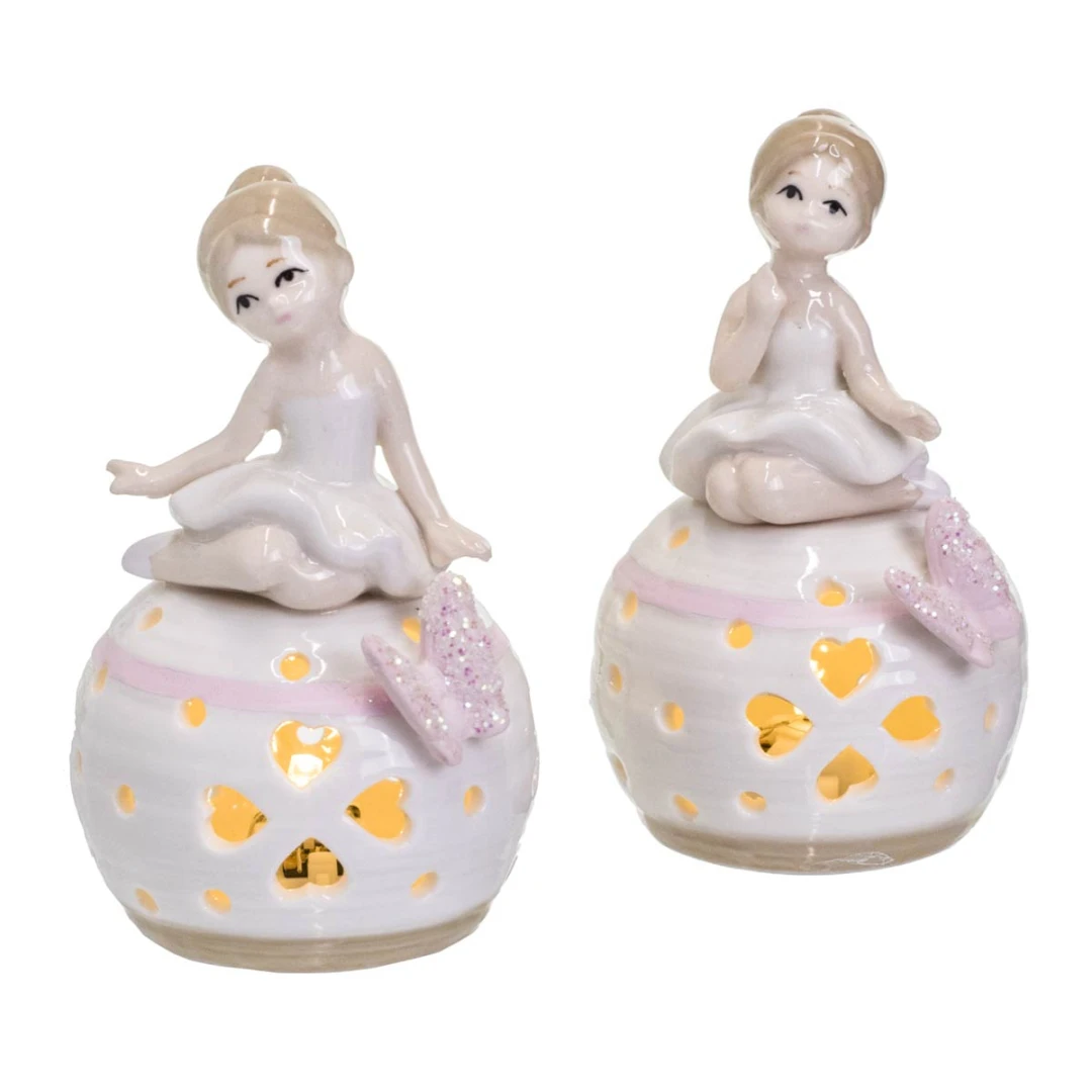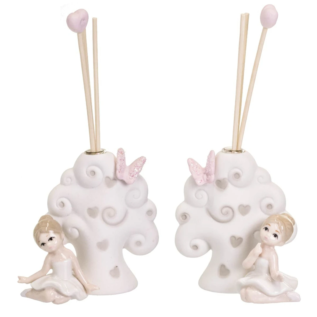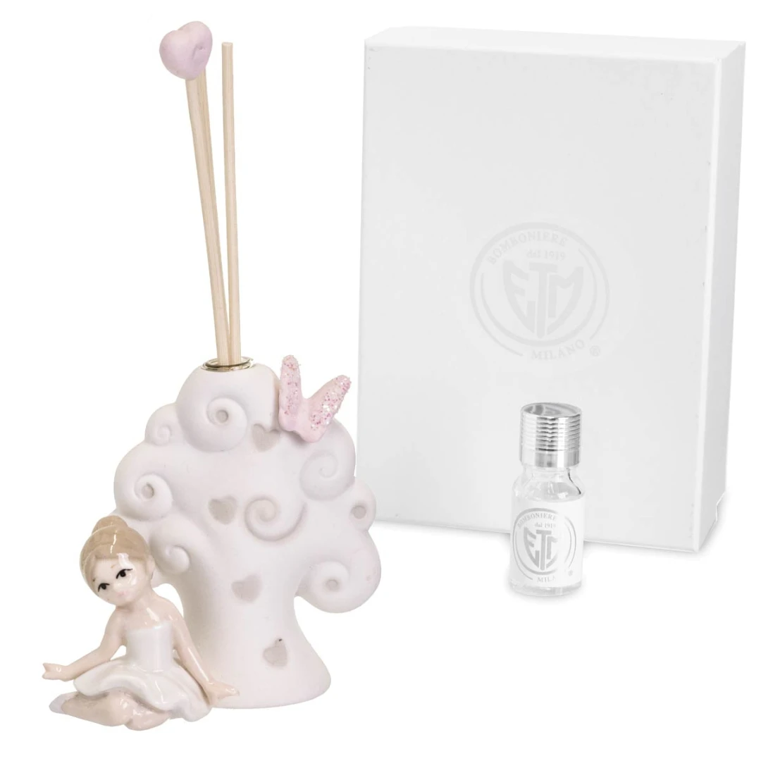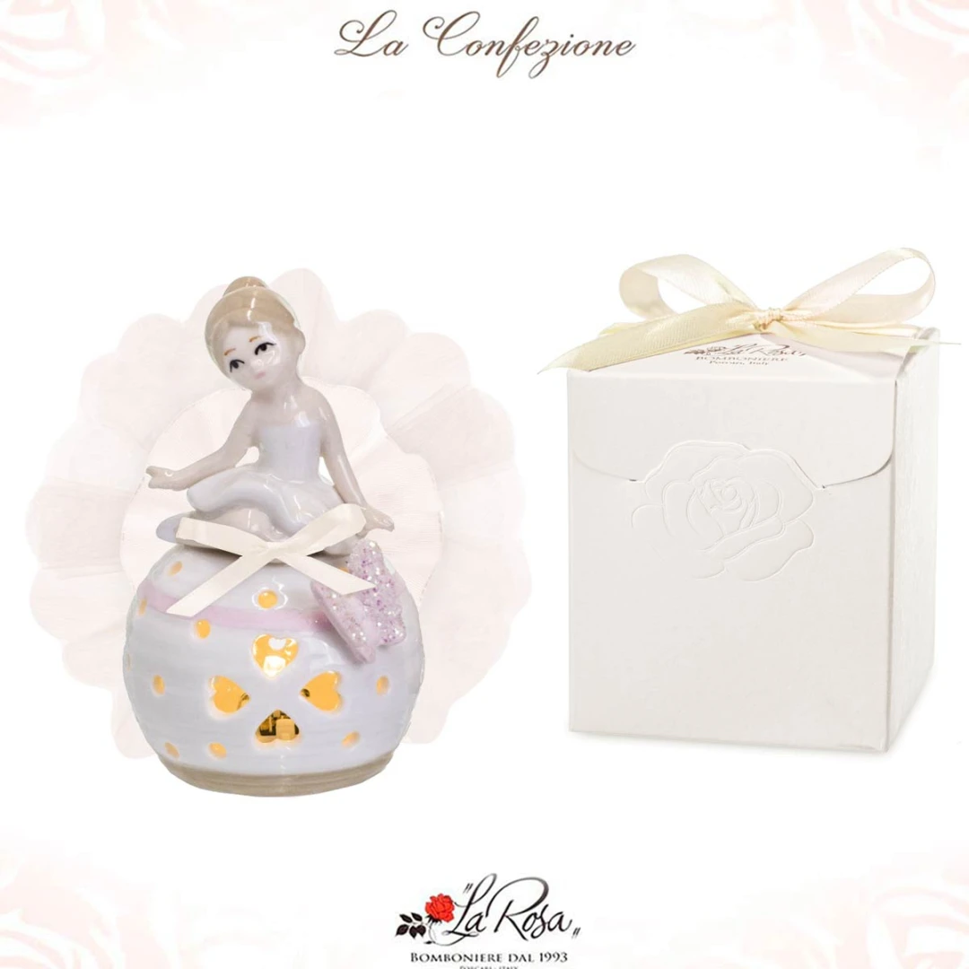 Bomboniere originali per prima comunione femmina, linea di ballerine in porcellana bianca e farfalle glitter, ideale per bambine che praticano danza, ginnastica ritmica e artistica.