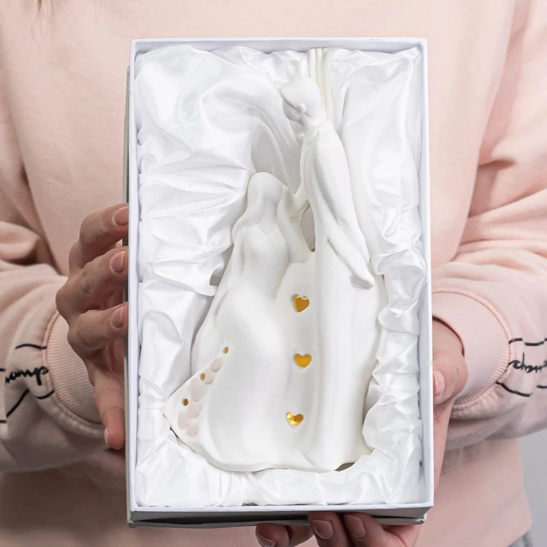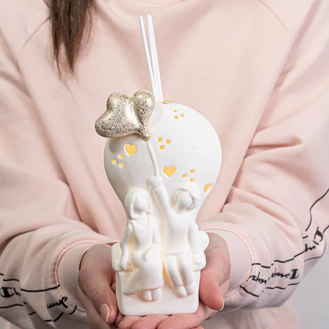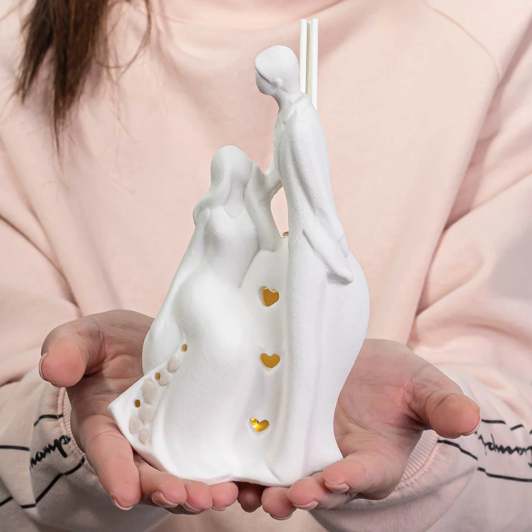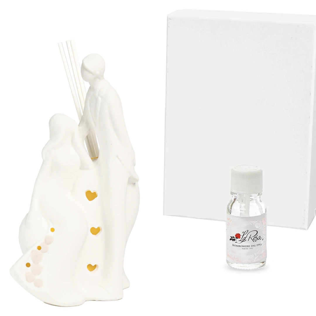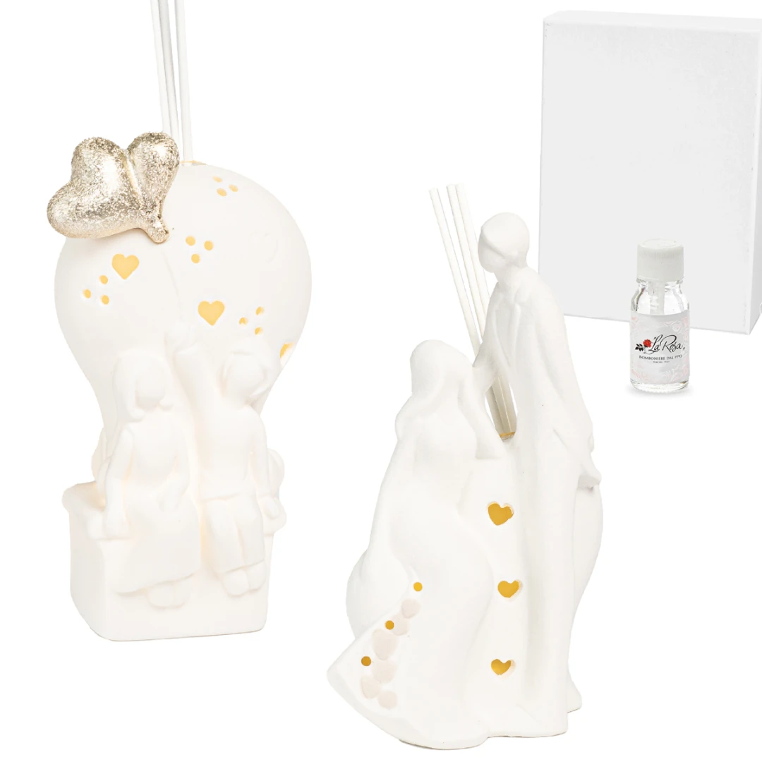 Bellissime Bomboniere 2026, Linea profumatori in ceramic abianca con illuminazione a LED. Entrambe le versioni includono bacchette, profumo e scatola. mi. Prodotto Artigianale. adatta per matrimonio e anniversari.