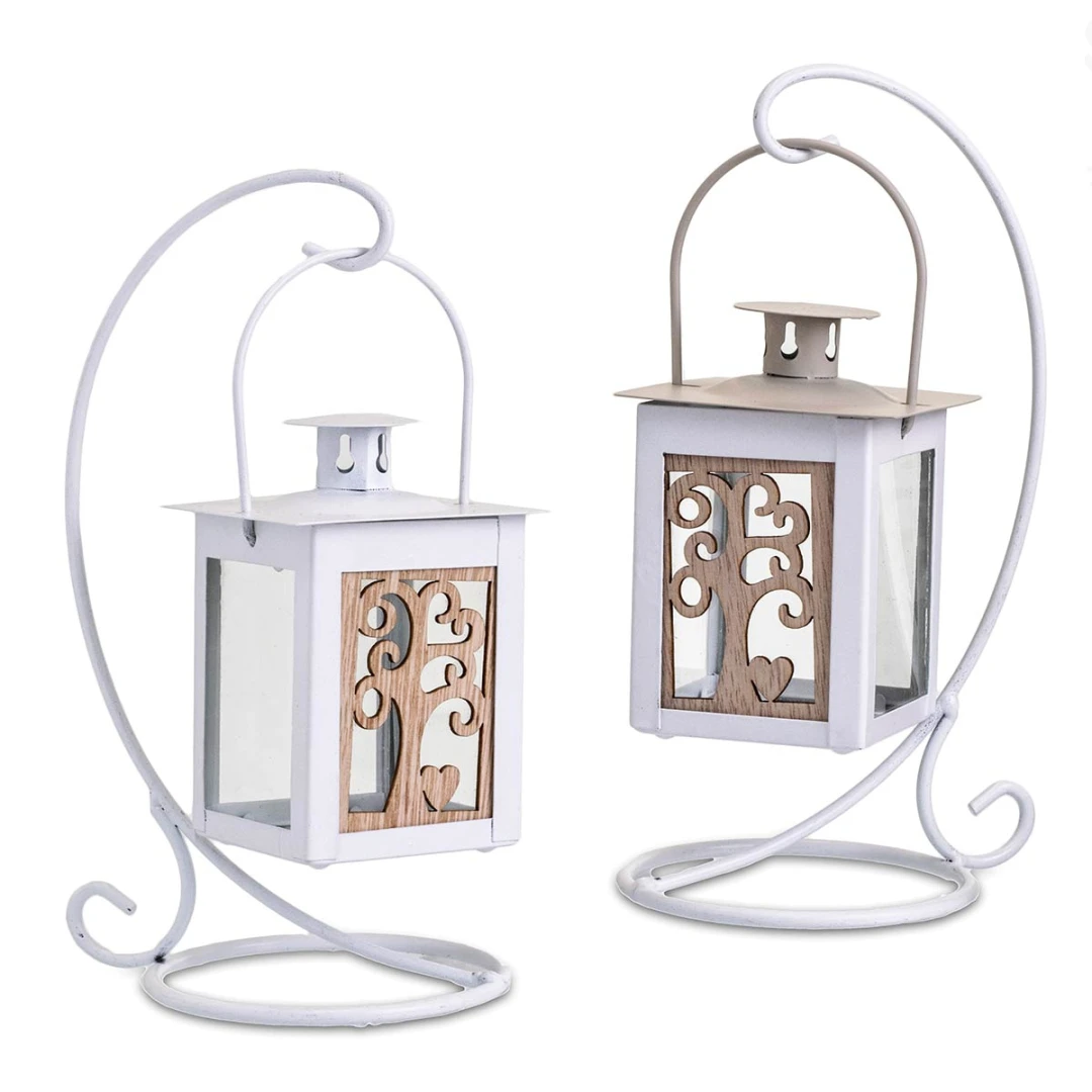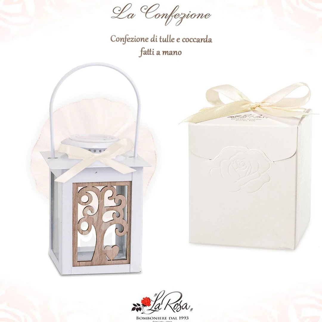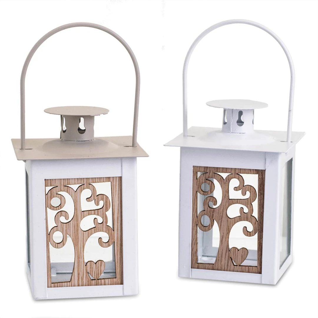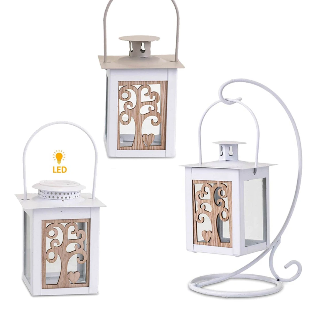 Bomboniere Originali 2026, Bellissima linea di Lanterne con Albero della vita in Metallo e legno di noce, in 2 colori assortiti come da foto, scegli tra Lanterna portacandela, Lanterna LED e Lanterna grande con Stand