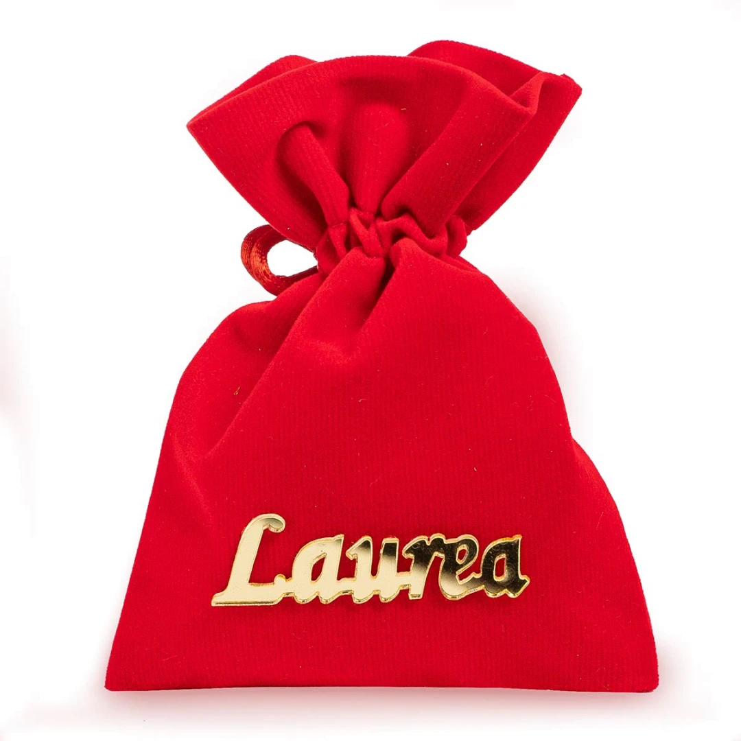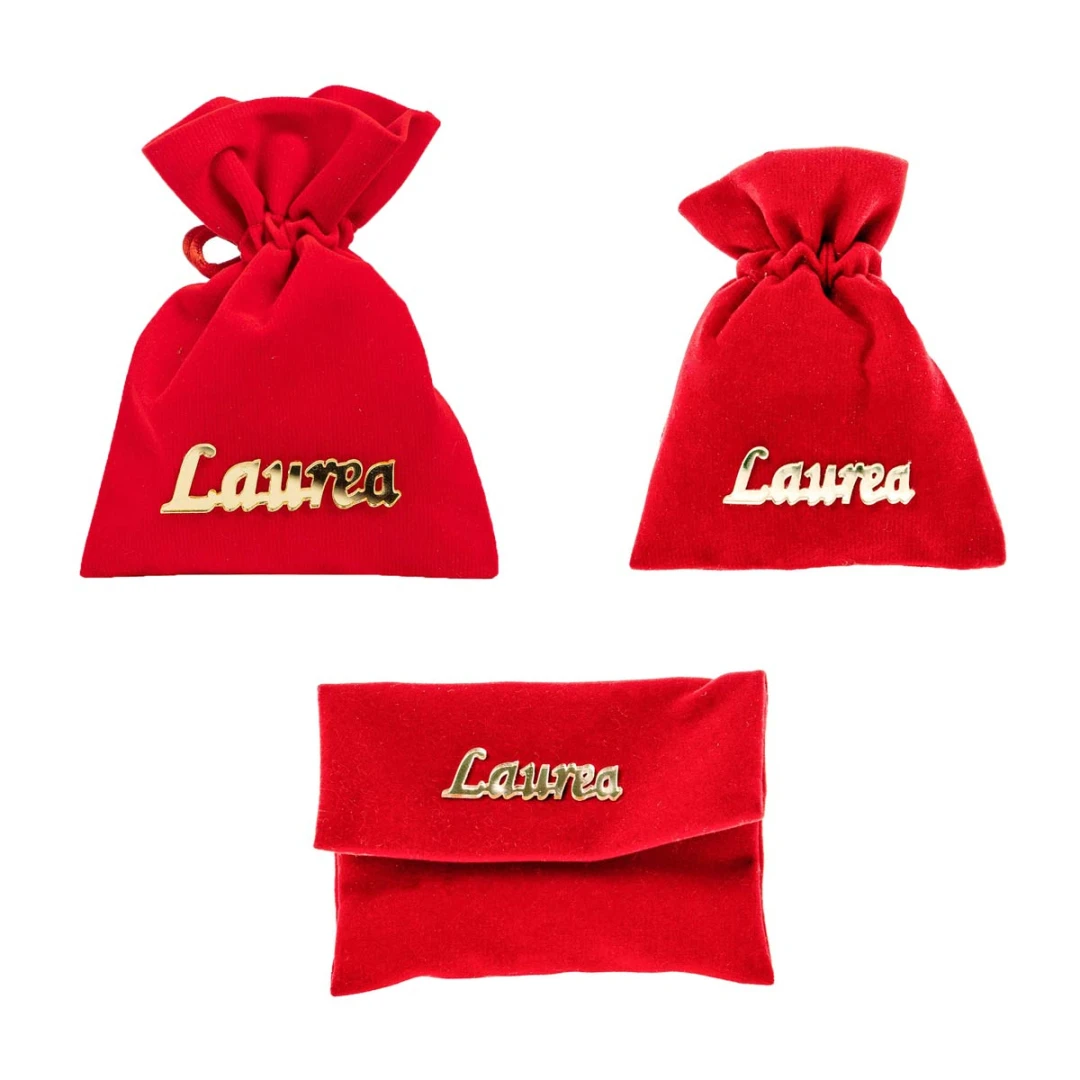 Bomboniere Laurea 2026, Linea Flash, Sacchettini Portaconfetti rossi con applicazione laurea color oro. Puoi scegliere fra diversi modelli. Prezzo cadauno. Prodotto Artigianale.