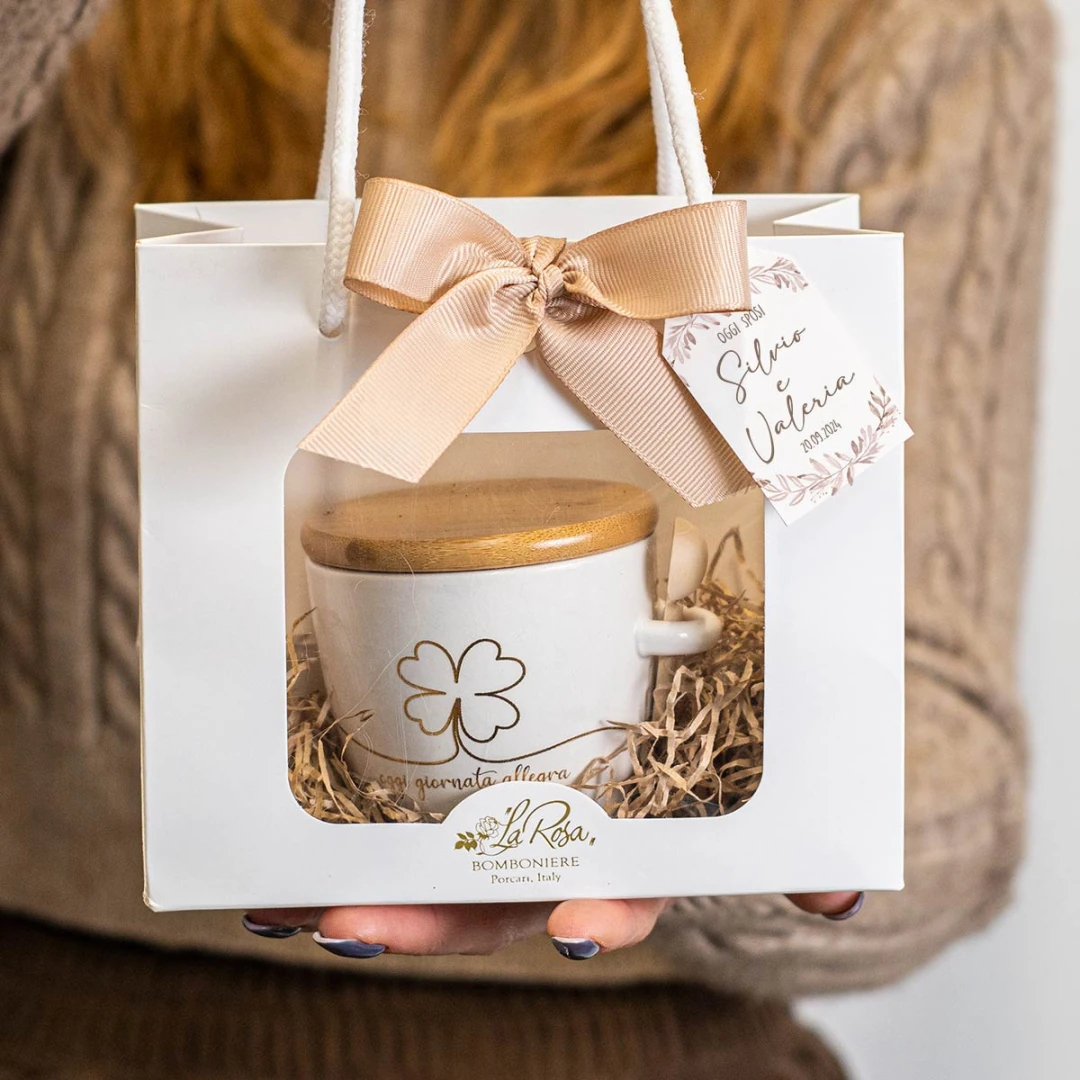 Riceverai la tua bomboniera confezionata con cura dal nostro laboratorio, pronta per essere donata, completa di