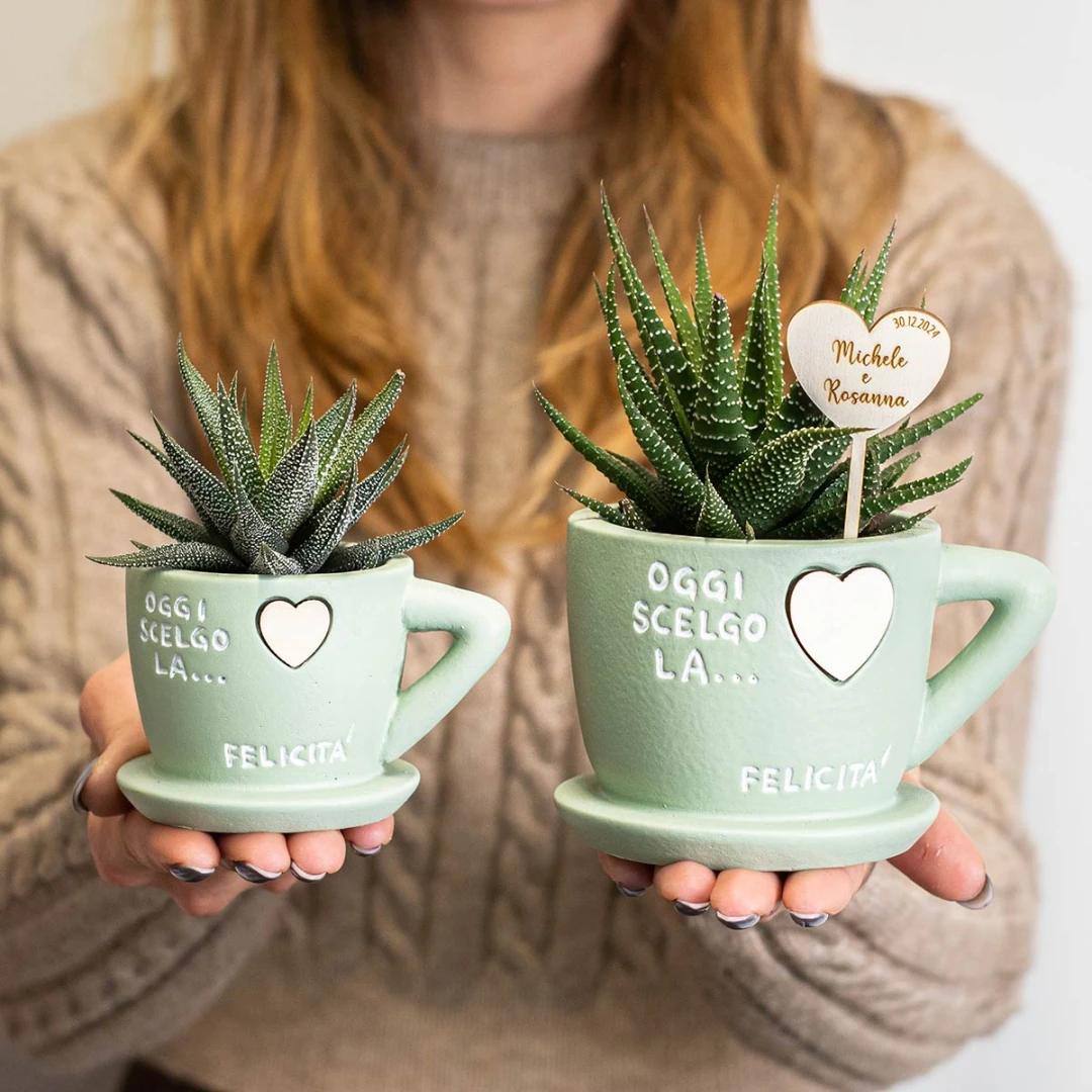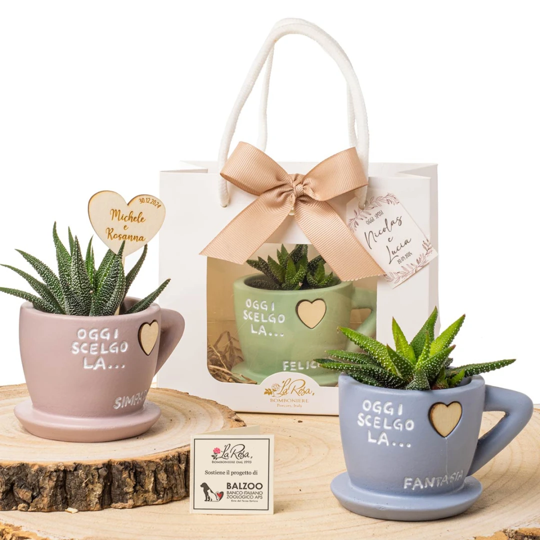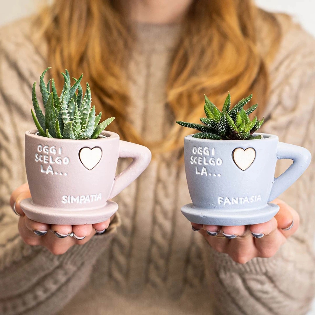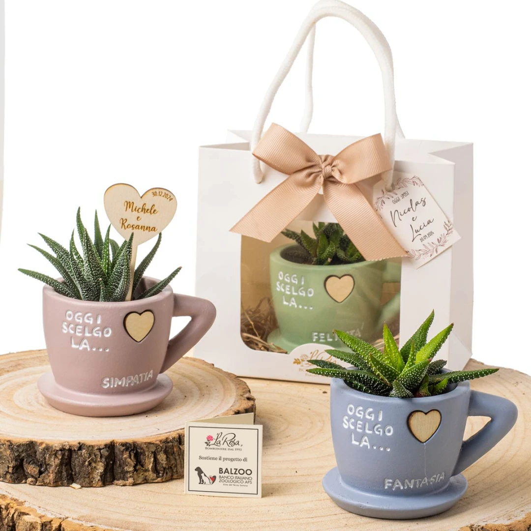 Bellissime Bomboniere 2026 Linea CUP Vasetti portapiantina in terracotta. Disponibili 2 dimensioni diverse. Arrivano assortite in 3 colori (Rosa, Celeste e Verde) Prezzo cadauno. Prodotto Artigianale.