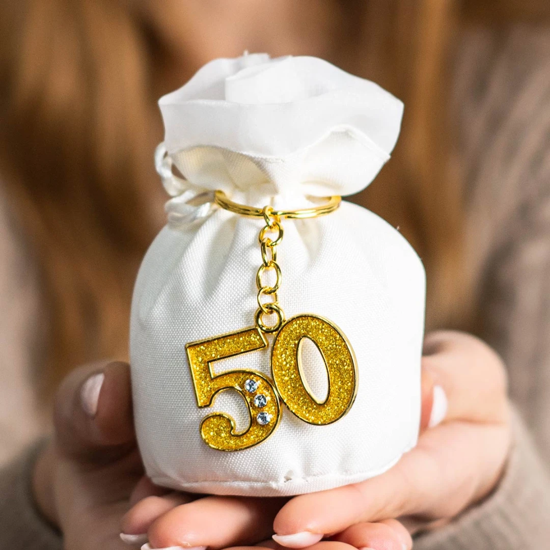 Bellissime Bomboniere 2026 Linea EVENT Set regalo Nozze d'Oro in metallo e strass. Disponibili 2 modelli. Entrambi i modelli arrivano completi di scatola in pvc, sacchetto e nastro in organza bianco. Prezzo cadauno. Prodotto Artigianale.