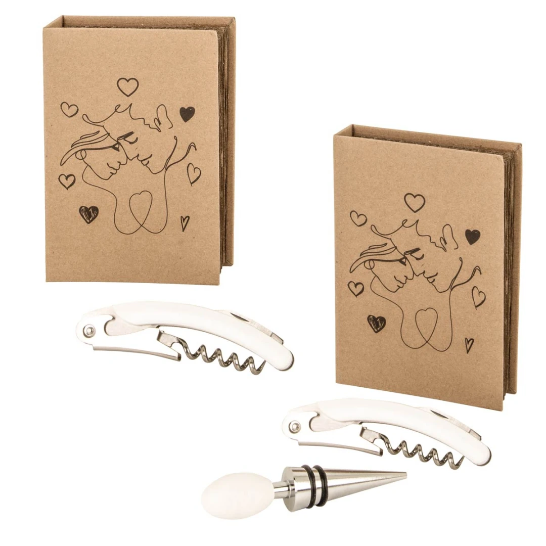 Bellissime Bomboniere 2026 Linea TENERO Set vino bianco in metallo. Disponibili 2 modelli. Entrambi i modelli arrivano completi di scatola. Prezzo cadauno. Prodotto Artigianale.