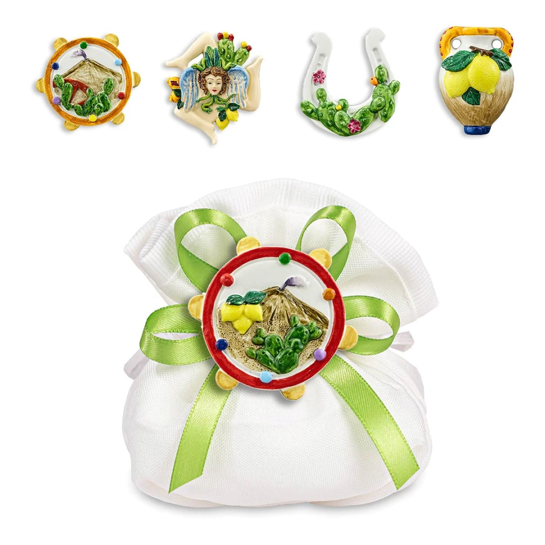 Bellissime Bomboniere Matrimonio 2026, Magneti tema sicilia, disponibili diversi modelli, arrivano assortiti nei seguenti modi: (2 modelli anfora, 4 modelli tamburello, 4 modelli ferro, trinacria solo 1 modello) Prezzo cadauno. Prodotto Artigianale.