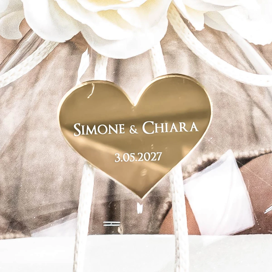 Bomboniere Matrimonio 2026 Clessidra in Vetro soffiato con Sabbia Bianca con cuore in plexiglass personalizzabile, misura MAXI alta 30 cm diametro 12,5 cm.