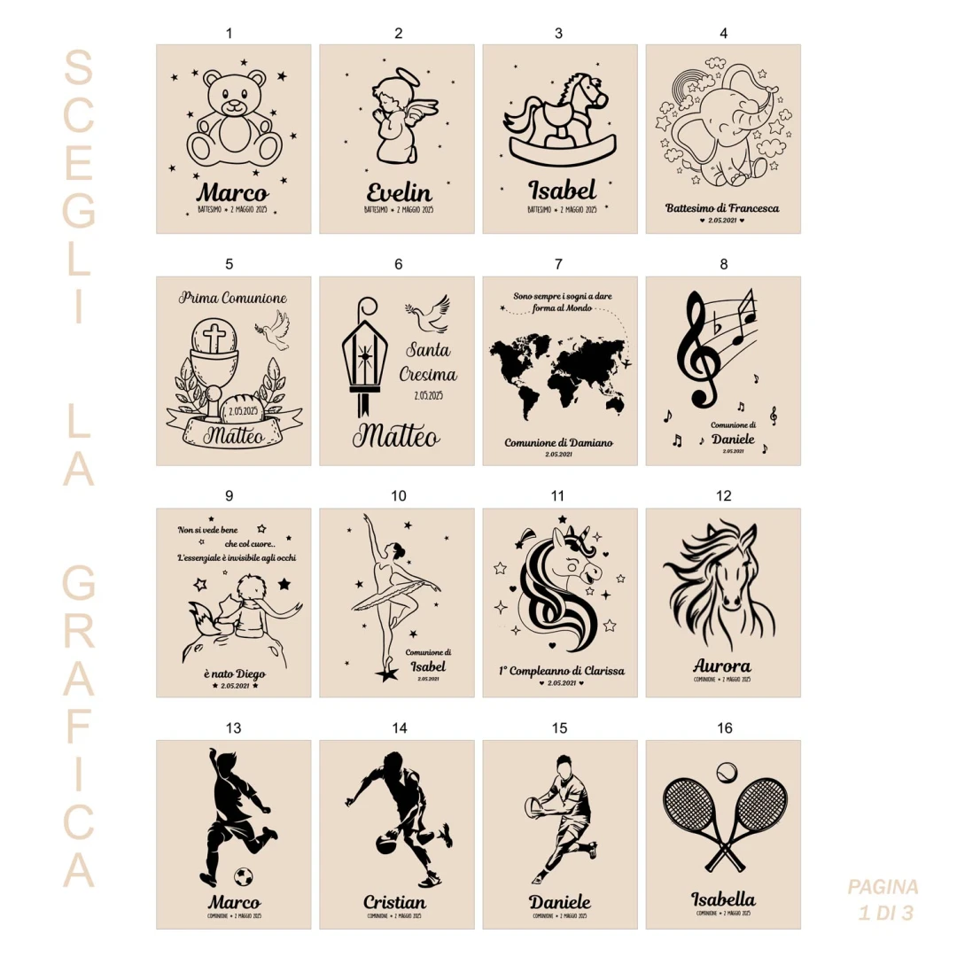 Oppure se hai un tema particolare e vuoi una grafica personalizzata (esempio tema Disney, circo, iniziali ecc) possiamo realizzare la tua bomboniera su misura, verrai contattata dal grafico e riceverai le bozze prima della produzione.