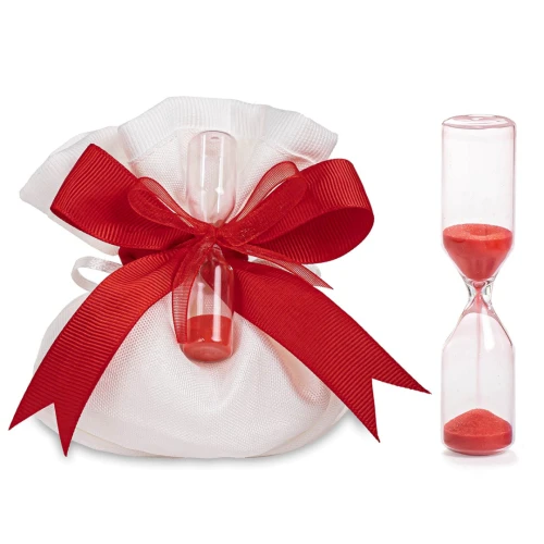 Bomboniere o Segnaposto 2026 ideali per Laurea, Clessidra mini in vetro con sabbia rossa. Prezzo cadauno. Prodotto Artigianale. Misura: 1,5 x 1,5 cm | h 6,5 cm