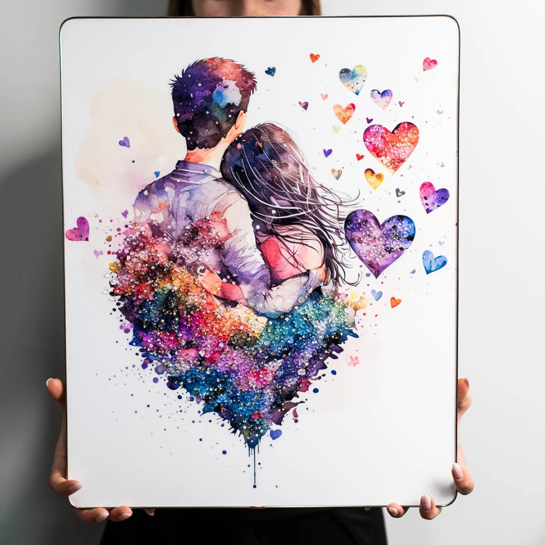 Bellissime Bomboniere 2026 Linea STONE Quadro da muro con coppia innamorata ed effetto pietra luminosa brillante e dettagli in colorati, ideale per matrimonio o anniversario, misura: 40 x 50 cm.