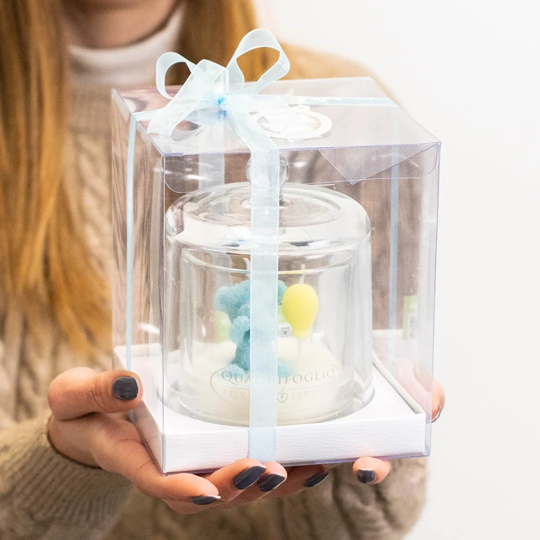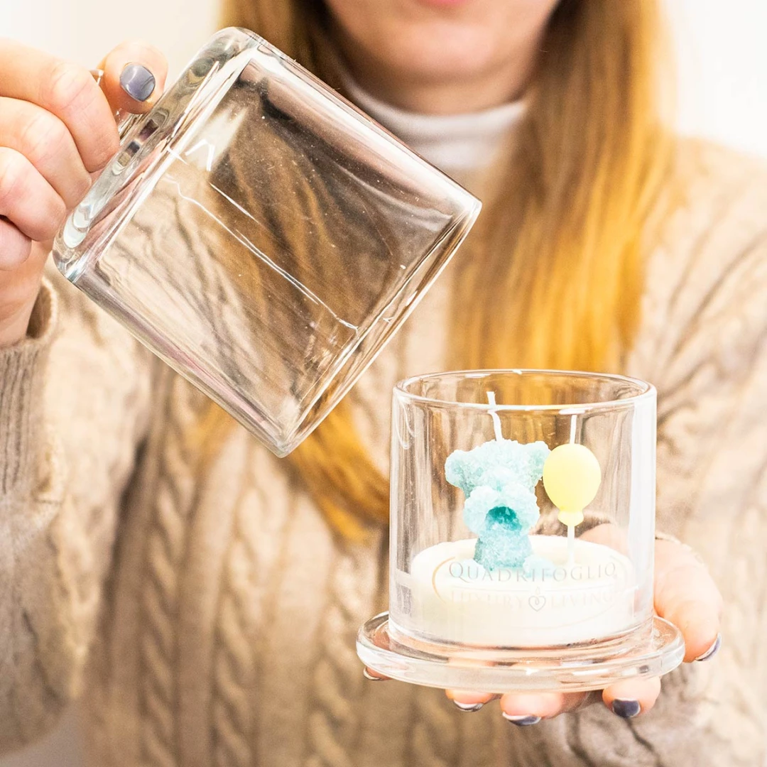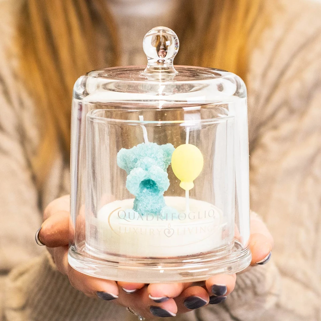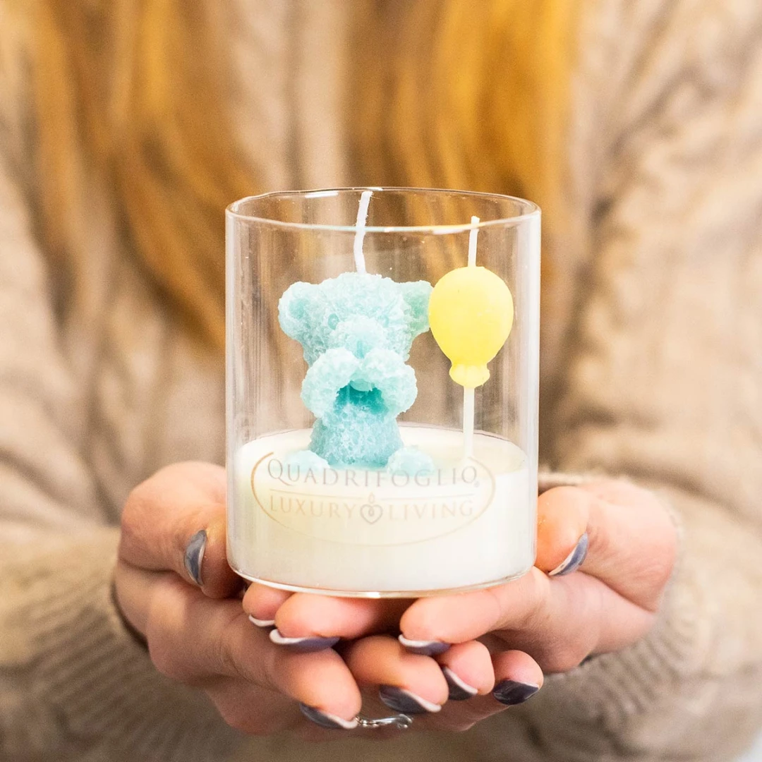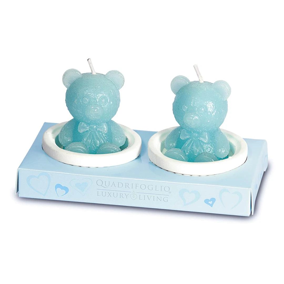 Bomboniere Solidali Quadrifoglio 2026 Linea Fiaba Celeste, composta da candele profumate a forma di orsetto in diversi modelli, ottimo compromesso tra bomboniera e beneficienza, parte del ricavato sarà devoluto alla fondazione ABIO (ass.italiana per il bambino in ospedale), complete di certificato di donazione e scatola in pvc con nastro in organza. Prezzo cadauno. Prodotto Artigianale.