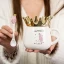 Bellissime bomboniere, tazze mug con animaletti e coperchio corona in colore oro, sul fronte della tazza si presentano diverse frasi simpatiche, è possibile scegliere tre diversi modelli.