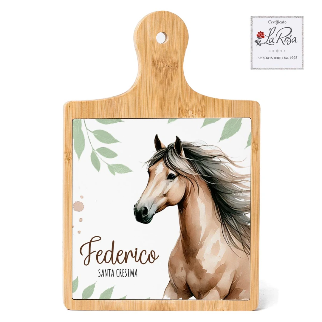 Bomboniere Tema Equitazione Tagliere in legno con stampa personalizzata, bellissima idea come bomboniera originale ed utile.