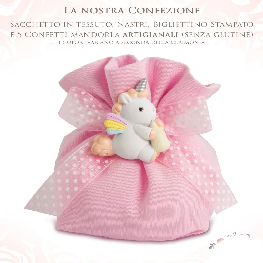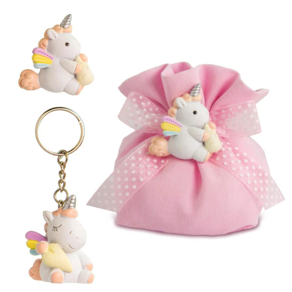 Bomboniere battesimo Nascita bimba 2026, Unicorno in resina decorata a mano, scegli il modello tra Magnete 4 cm e Portachiavi 5 cm.