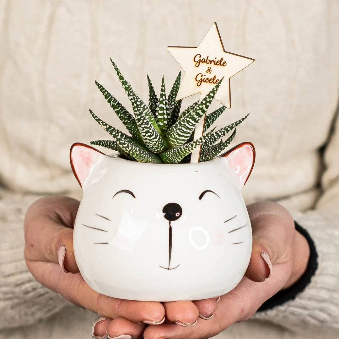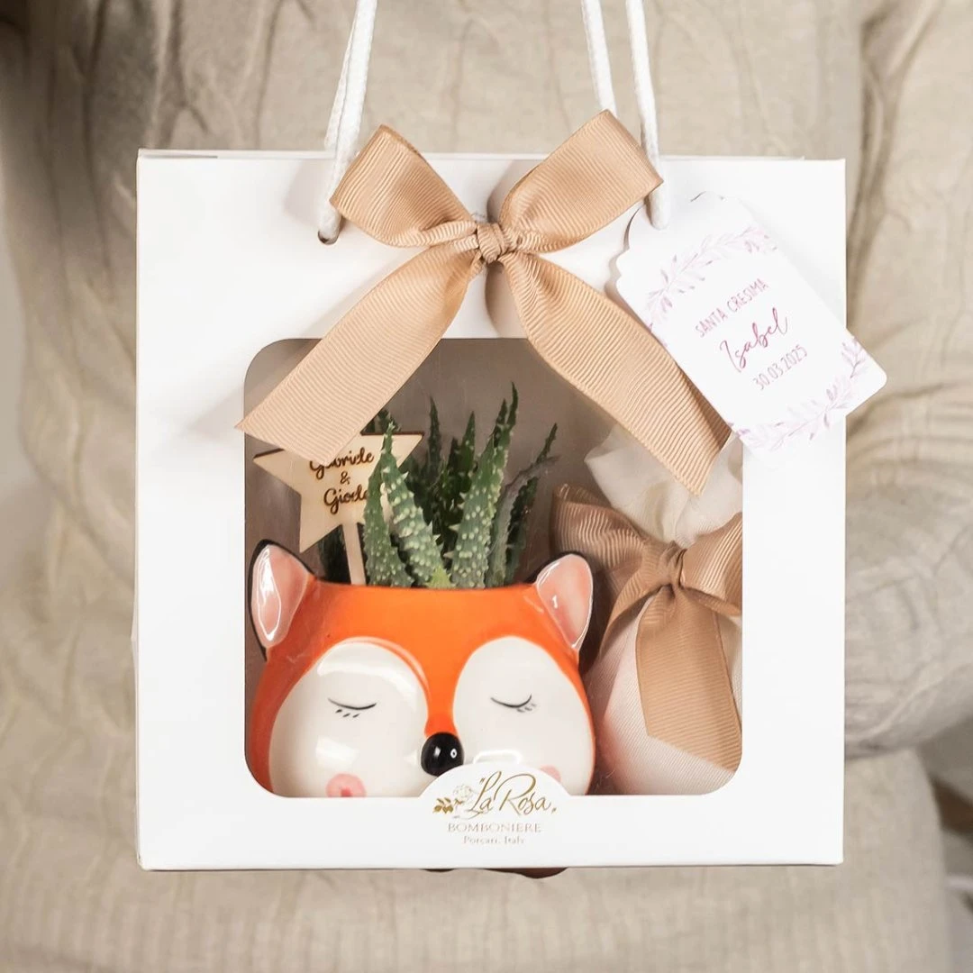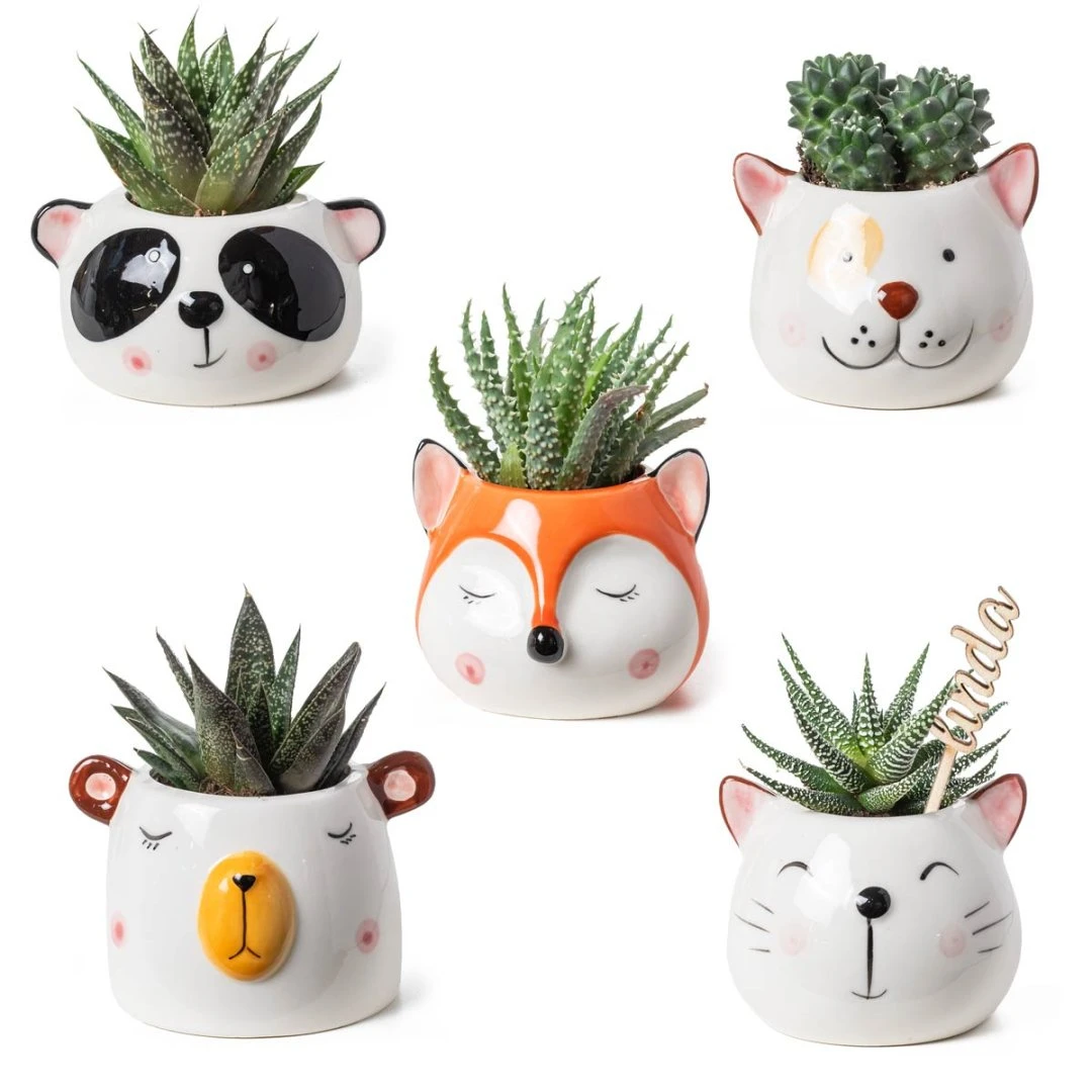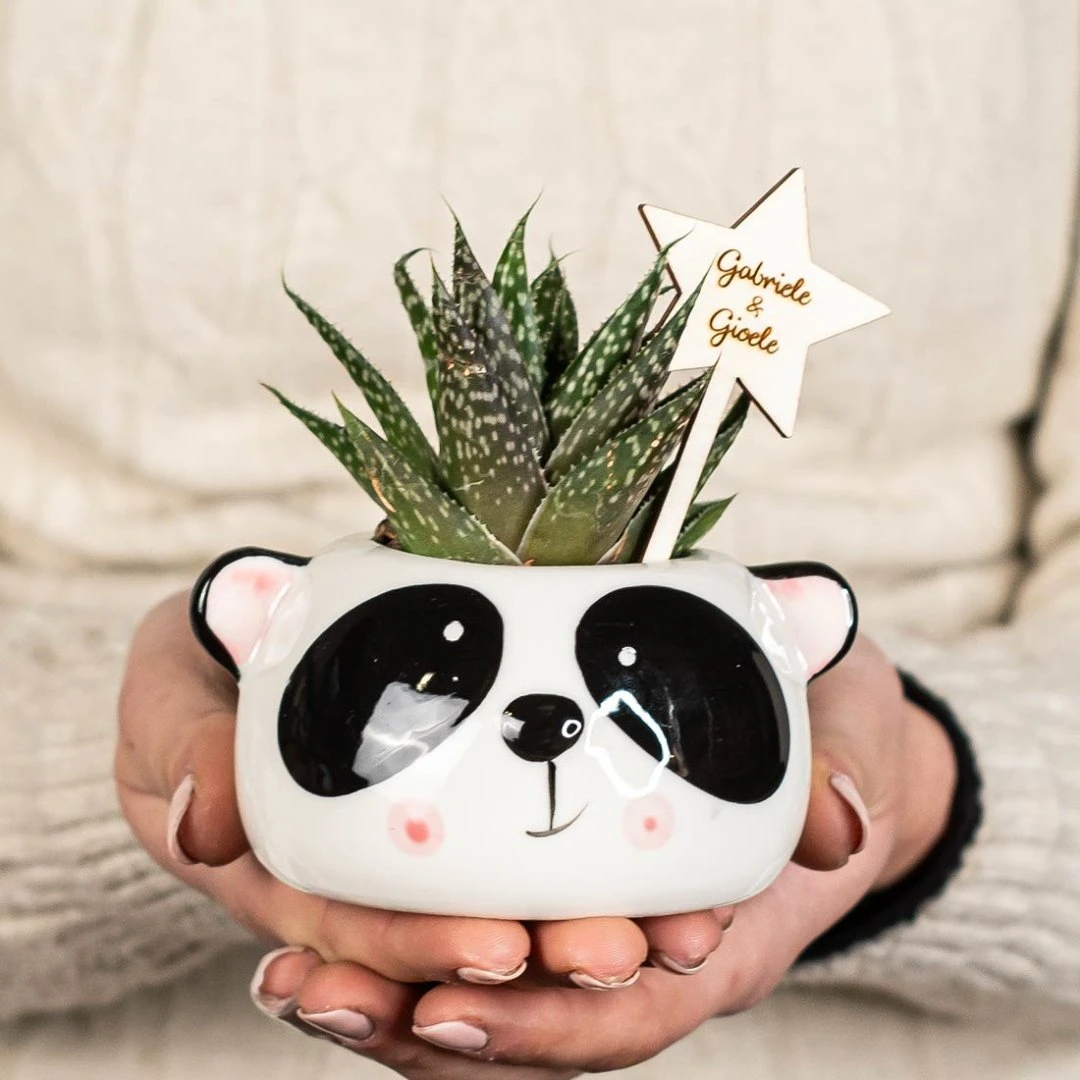 Graziosi vasetti in ceramica lucida con simpatici volti di animali assortiti: orso, cane, gatto, panda e volpe. Un’idea originale e decorativa perfetta come bomboniera ogni occasione.