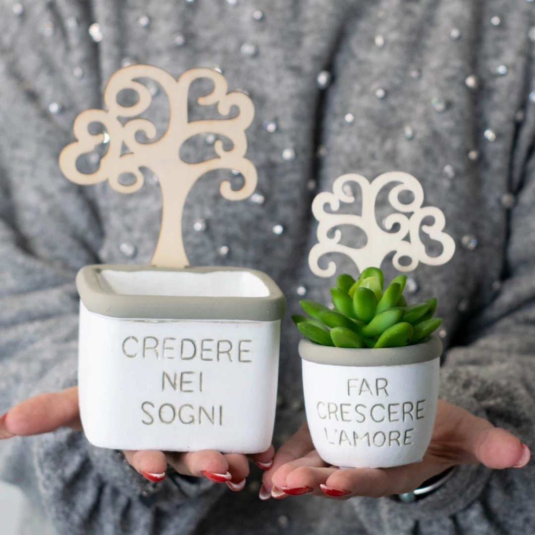 ⚡ OFFERTISSIMA Bomboniera Vaso in cemento Porta Piante con albero e frasi