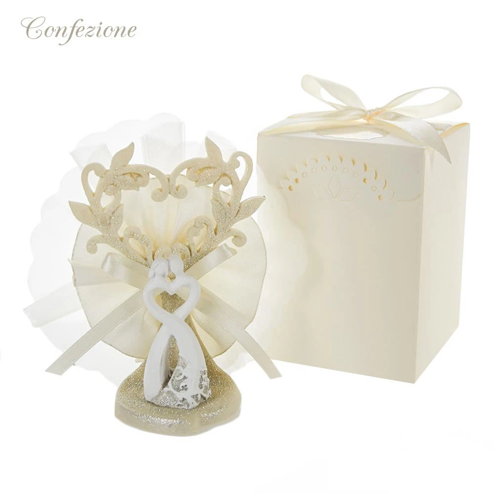 -CONFEZIONE: l'oggetto viene confezionato con doppio tulle, coccarda in tafta', confetti e biglietto stampato, il tutto scatolato con scatola avorio e legatura esterna.