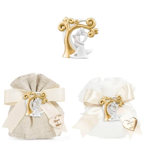 Bellissime Bomboniere 2026 per Matrimonio o Nozze d'Oro, Magnete con sposini ed albero della vita oro in resina. Prezzo cadauno. Prodotto Artigianale. misura: 5 cm. Inoltre, è possibile aggiungere un cuore personalizzato con il proprio nome