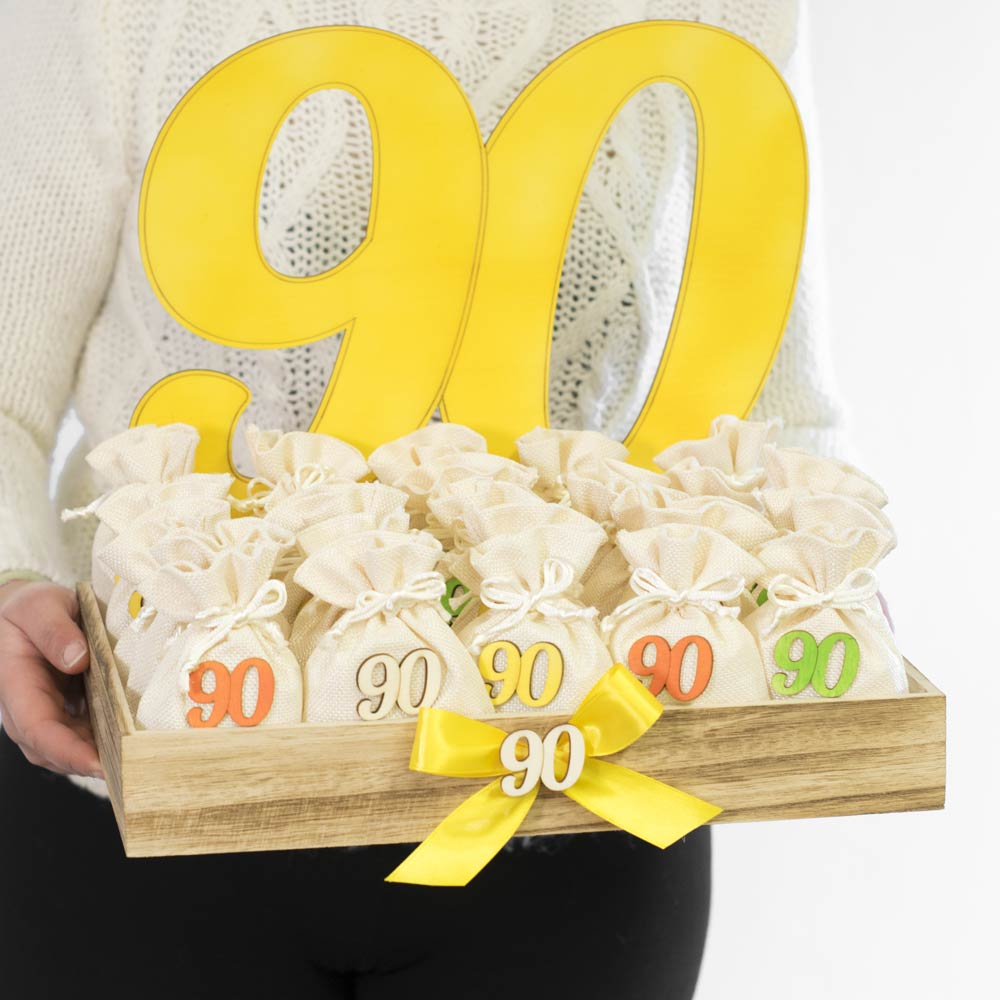 Cesto per Bomboniere 90 Anni compleanno, idea originale per presentare le bomboniere o sacchettini per ricordare questo bellissimo traguardo.. 90 anni di età!