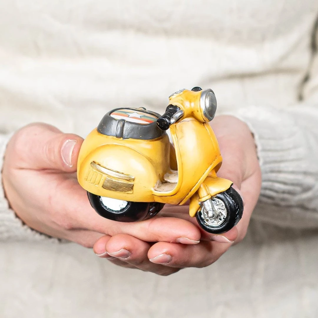 Linea SPEED: piccole vespe in resina dal fascino vintage, curate nei dettagli e assortite in 4 colori. Un ricordo originale e grintoso. Disponibili 3 modelli. Arriva assortito nei 4 colori mostrati (Arancione, verde, blu e giallo). Prezzo cadauno. Prodotto Artigianale.