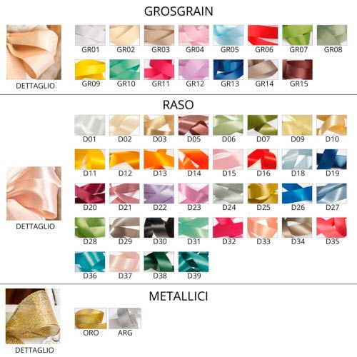 Riceverai per ogni bomboniera 50 cm di nastro in raso, con il nome stampato a caldo