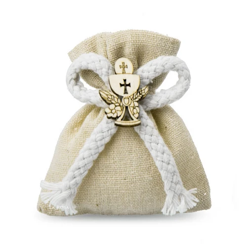 Bomboniere sacchettini portaconfetti di yuta rustico shabby chic con simboli sacri (comunione, cresima, sacra famiglia e albero della vita)