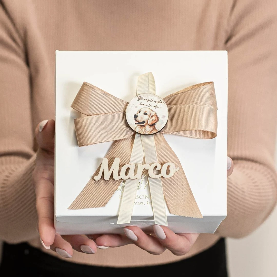 Riceverai la tua bomboniera confezionata con cura dal nostro laboratorio, completa di