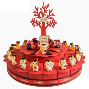 Per presentare le bomboniere da laurea puoi acquistare sul nostro shop i vassoi in cartoncino, oppure il set di cappelli rossi grandi dove puoi metterci sopra le scatoline e creare un bel contrasto.