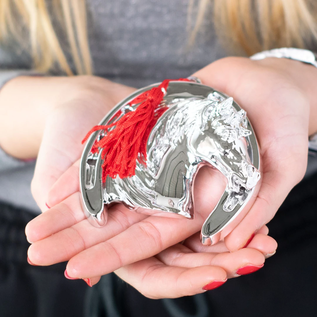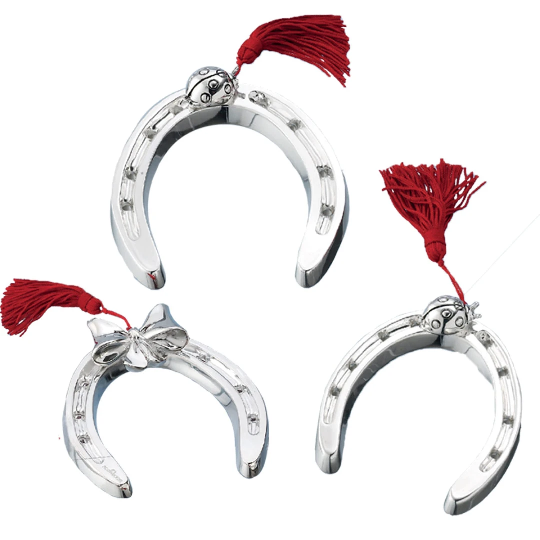 Idee bomboniere e Regali Originali, Ferro di cavallo Portafotuna in argento con simbolo fiocco o coccinella,completo di nappina rossa. Prodotti in Italia di altissima qualità, comprese di scatola e certificato made in Italy ![]()
