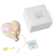 Bellissime Bomboniere 2026, Linea Volo Balloon, Palloncini con cuori e scritte in ceramica con un cordoncino alla base a LED. Arrivano assortiti in 4 colori. Prezzo cadauno. Prodotto Artigianale.Misura: 9 x 8 cm | h 5 cm pile non comprese