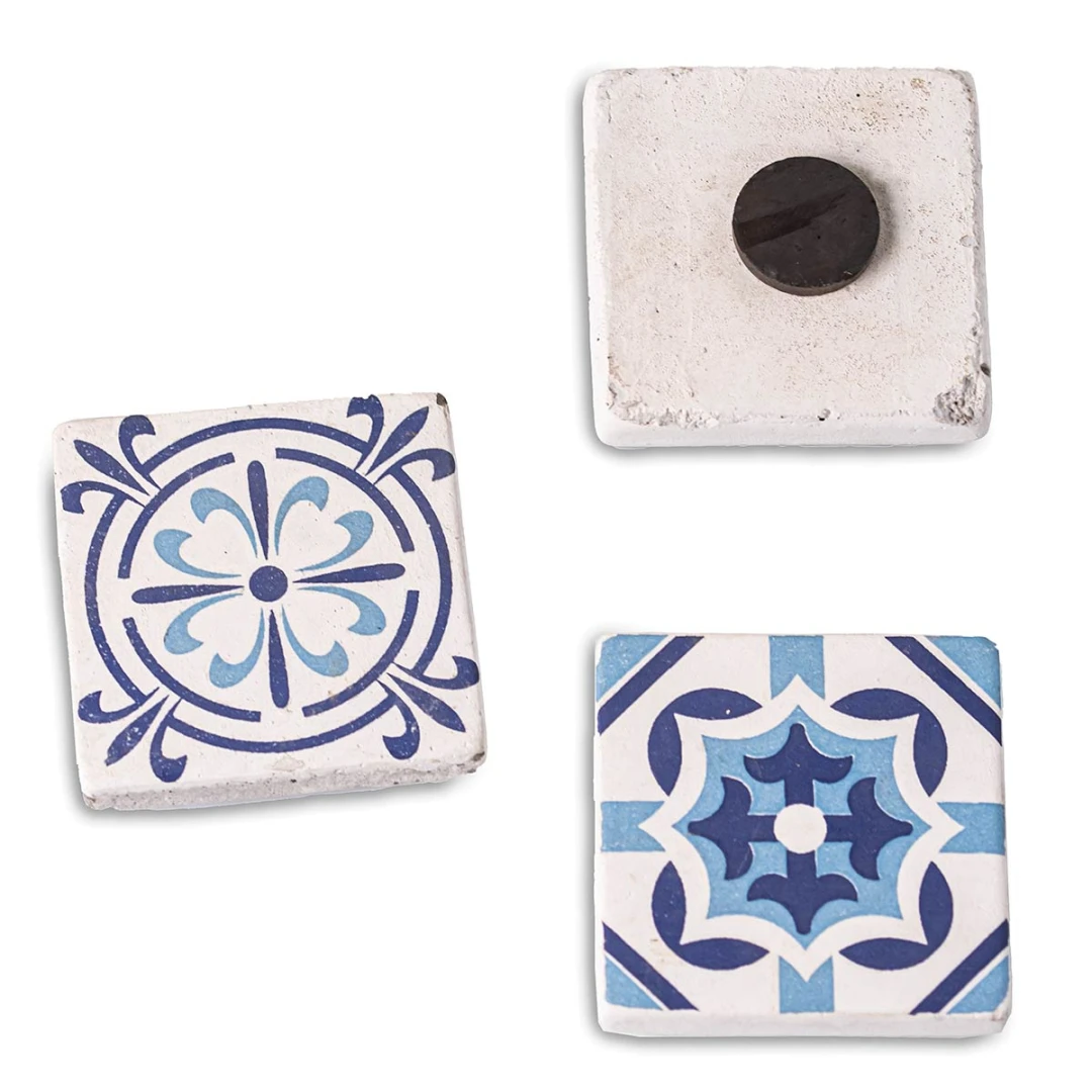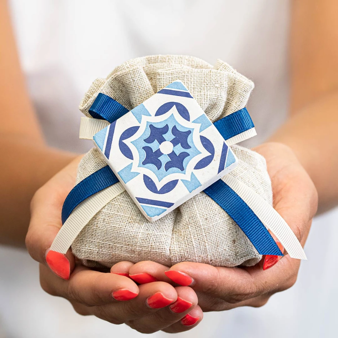 Bomboniere o segnaposto originali ed economici, calamite a forma di mattonelline in cemento decorate con immagini maioliche, misto nei 2 decori, prezzo cadauno, misura 5x5x1 cm