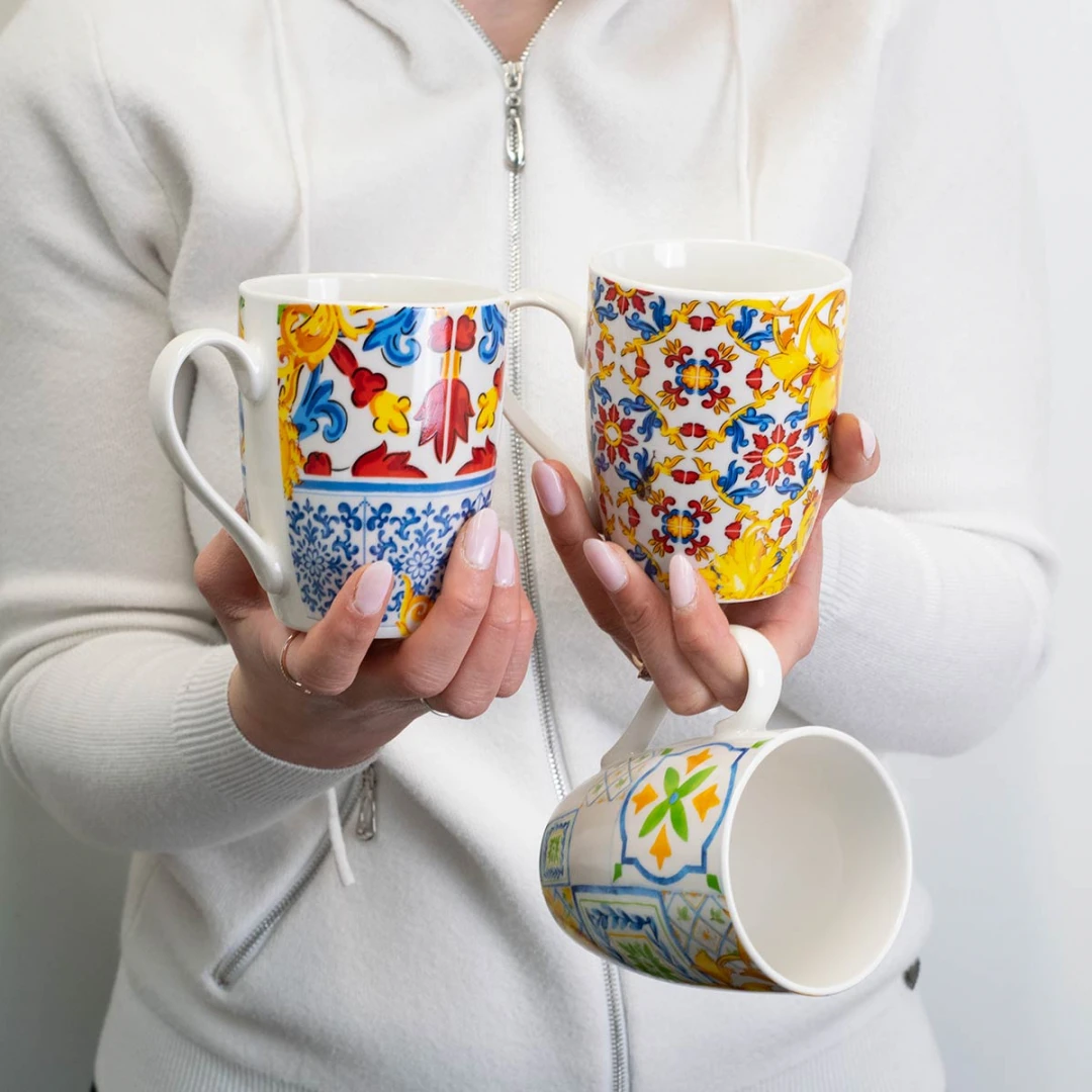 La Tazza è decorata in 3 decori maiolica misti, il prezzo si riferisce ad 1 mug con 1 shopper, la vendita è a multipli di 3 (3,6,9,12,15 ecc...)