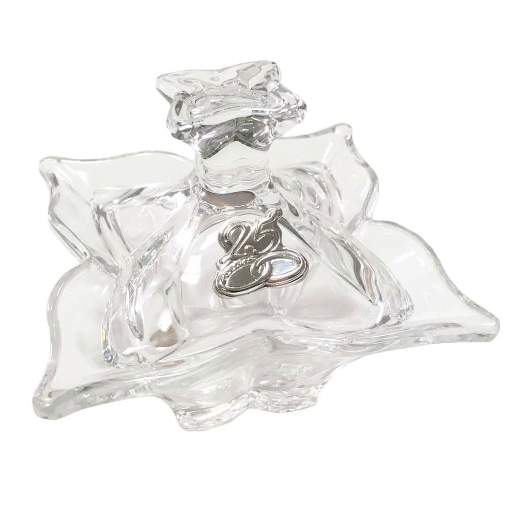 bomboniera nozze argento scatola in vetro con placca 25 anniversario, idea originale, collezione 2026, misura 9.5 cm